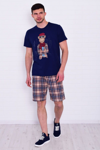 Стильная мужская пижама из кулирки с принтом в виде печати. Состоит из футболки и шорт. Футболка - горловина полукруглая, рибана. Шорты прямого покроя с удобными карманами по бокам. Верх резинка, низ подгибка. Длина изделия по спинке: 46 р. - 68 см, 48 р - 69 см, 50 р. - 70 см, 52 р. - 71 см, 54 р - 73 см, 56 р. - 75 см, 58 р - 77 см, 60 р - 78 см. Длина изделия по боковому шву: 46 р. - 52 см, 48 р - 53 см, 50 р. - 54 см, 52 р. - 55 см, 54 р - 56 см, 56 р. - 57 см, 58 р - 58 см, 60 р - 59 см. Длина изделия по шаговому шву: 46 р. - 23 см, 48 р - 23 см, 50 р. - 23 см, 52 р. - 23 см, 54 р - 23см, 56 р. - 23 см, 58 р - 23 см, 60 р - 23 см. Уход: деликатная стирка в машине при 30 градусах.