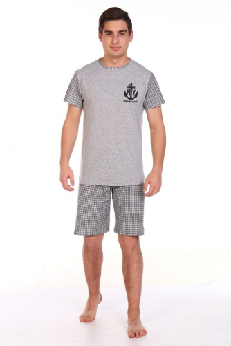 Костюм мужской футболка+шорты - NY - 19 - светло-серый