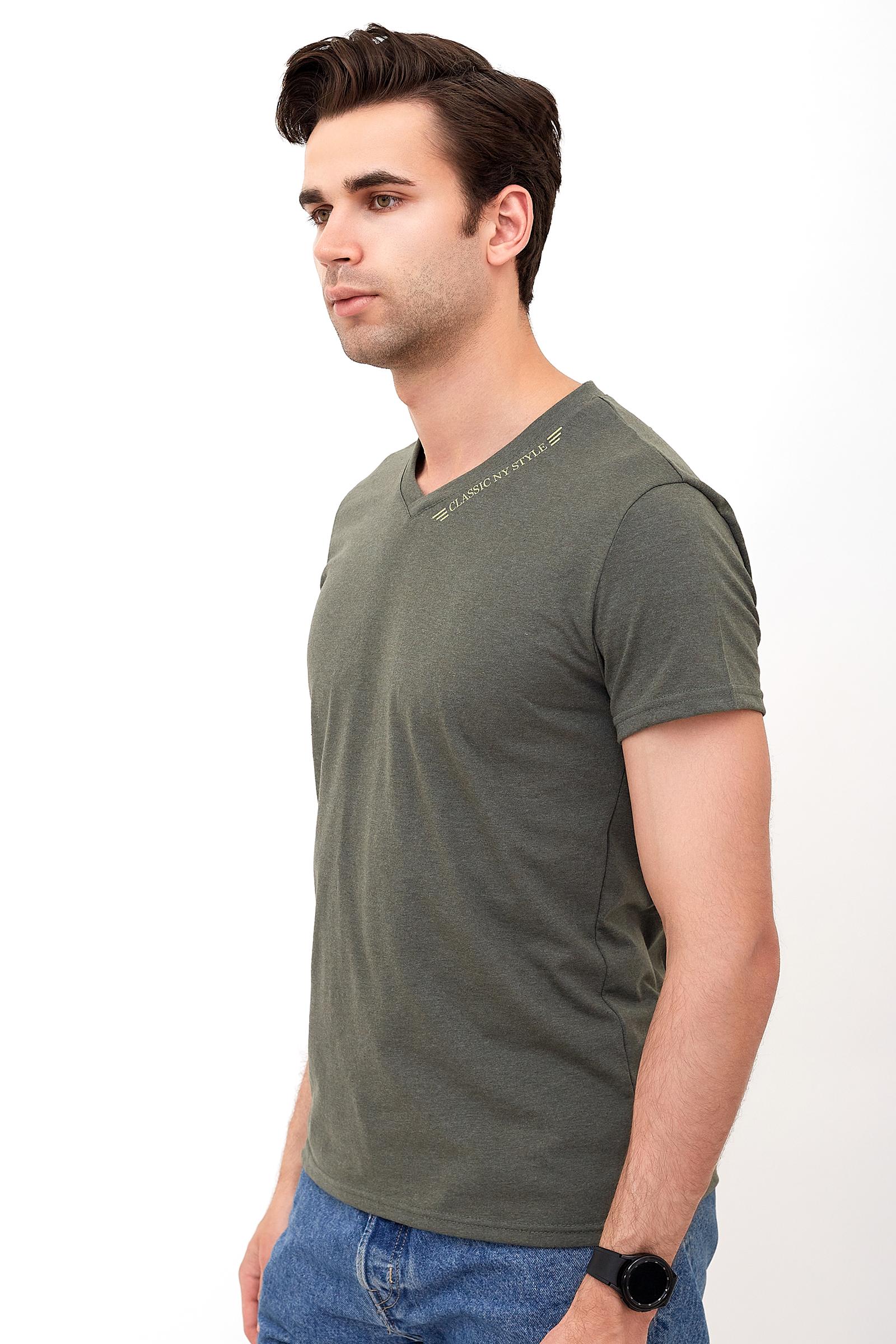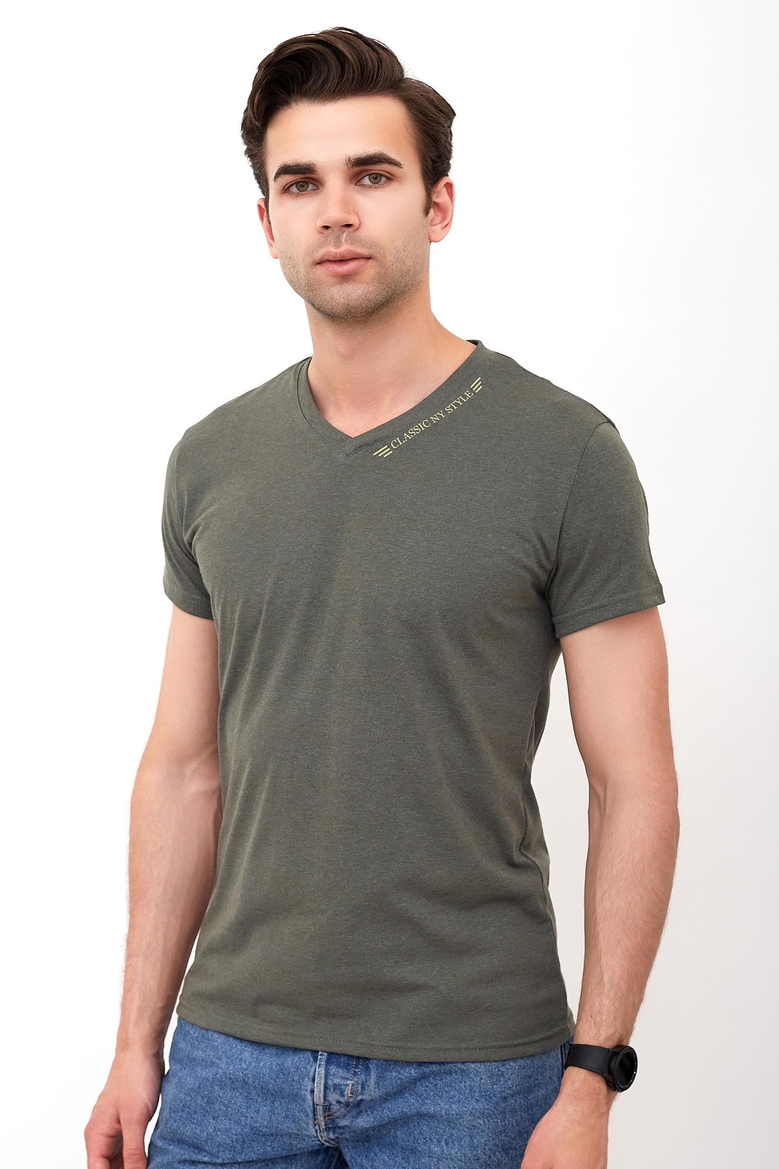 Удобная и комфортная футболка полуприлегающего кроя. Футболка с V – образным вырезом горловины и коротким рукавом