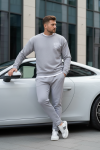 Мужской спортивный костюм из хлопкового трикотажа. В комплекте костюма куртка на манжетах и свободные прямые брюки. Воротник куртки - стойка, полочка и рукава выполнены оригинальным образом комбинацией тканей, застёжка на молнии. Куртка и брюки с удобными карманами. Брюки на поясной резинке, выполнены из однотонного цвета. Модель костюма свободного покроя, не сковывает движений. Такой костюм прекрасно подойдёт как для спорта, так и для отдыха.
