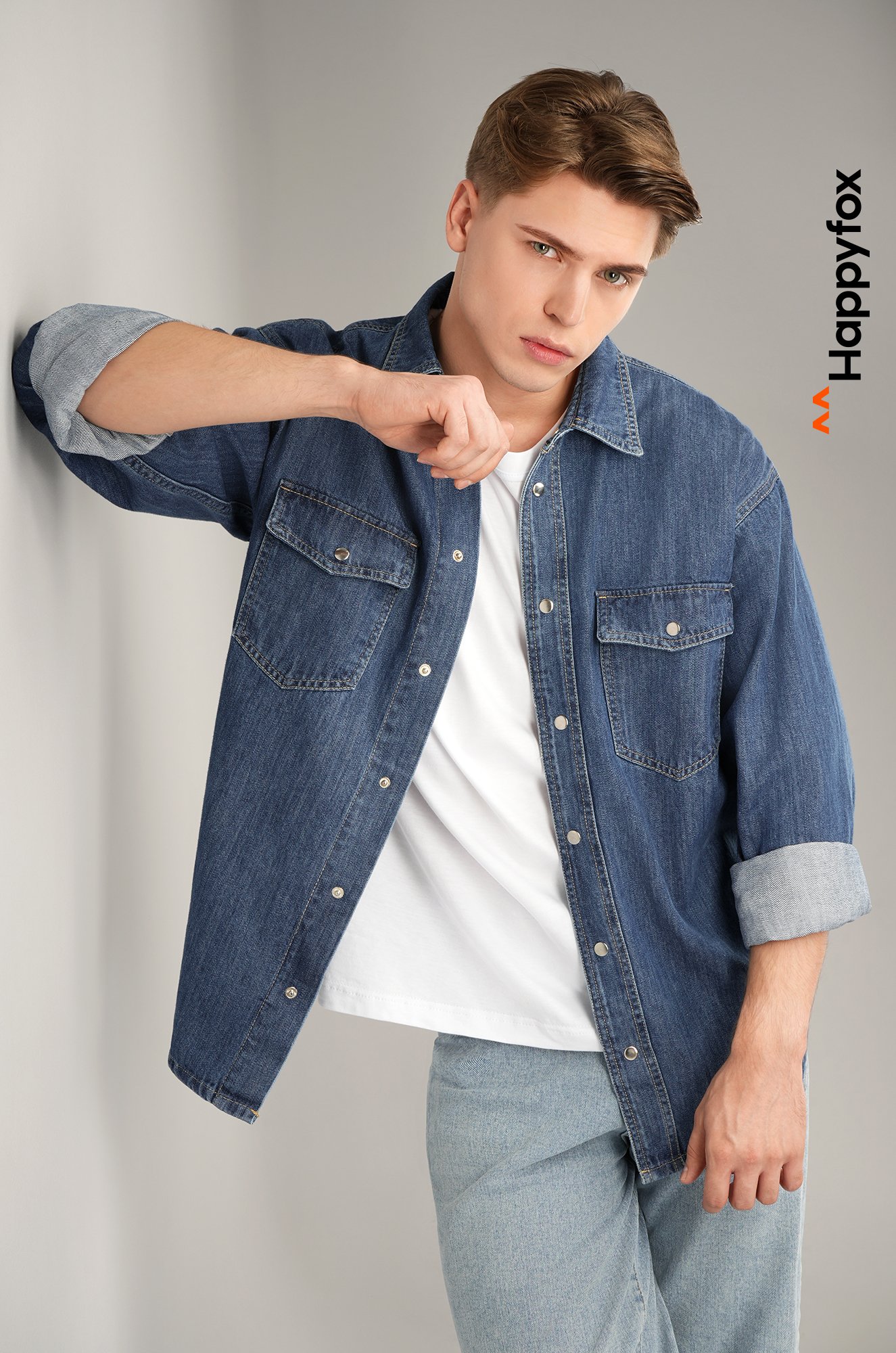 Мужская джинсовая рубашка — это воплощение стиля и практичности. Синяя рубашка с длинным рукавом станет основой демисезонного гардероба.