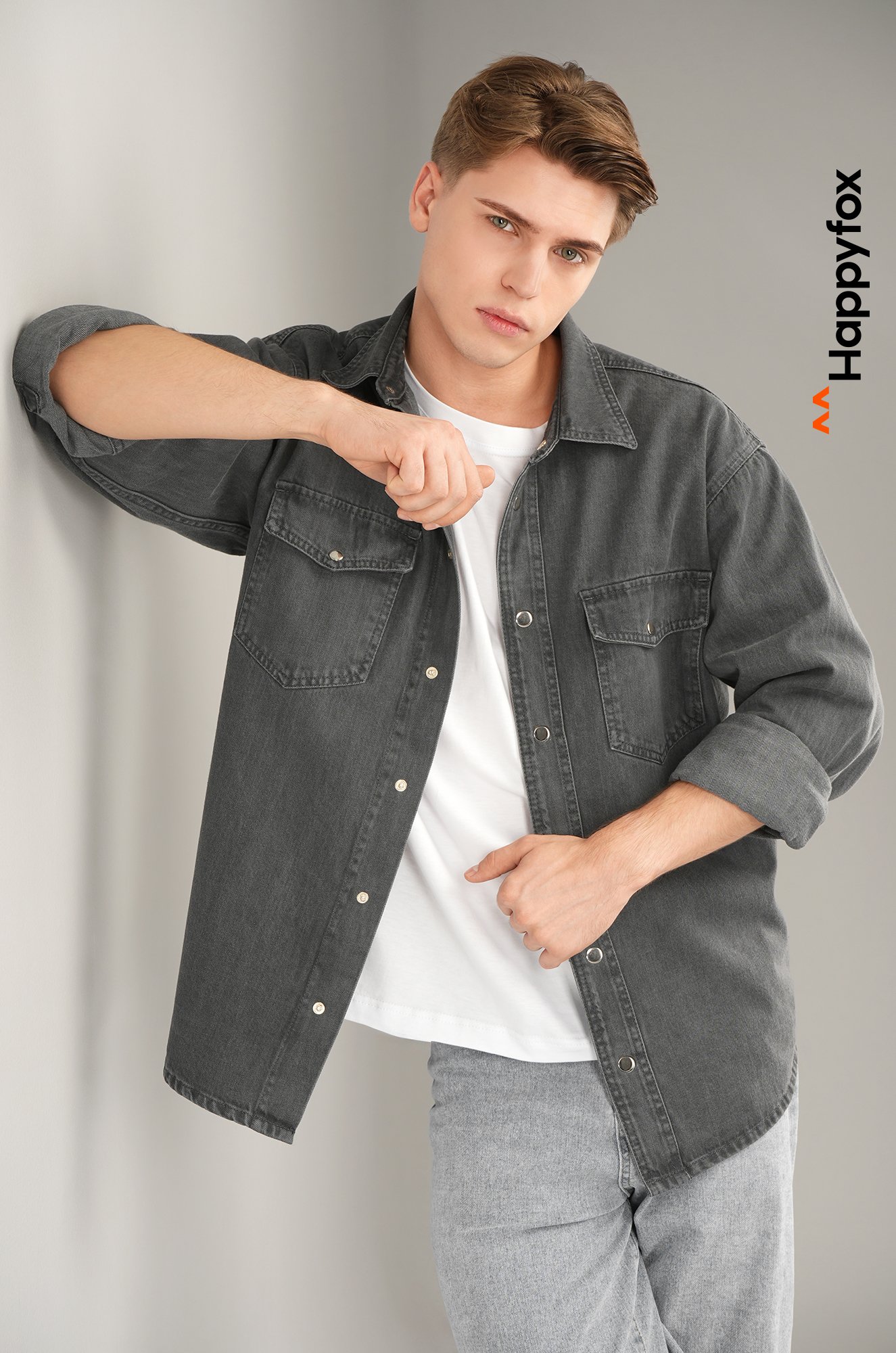 Мужская джинсовая рубашка — это воплощение стиля и практичности. Серая рубашка с длинным рукавом станет основой демисезонного гардероба.