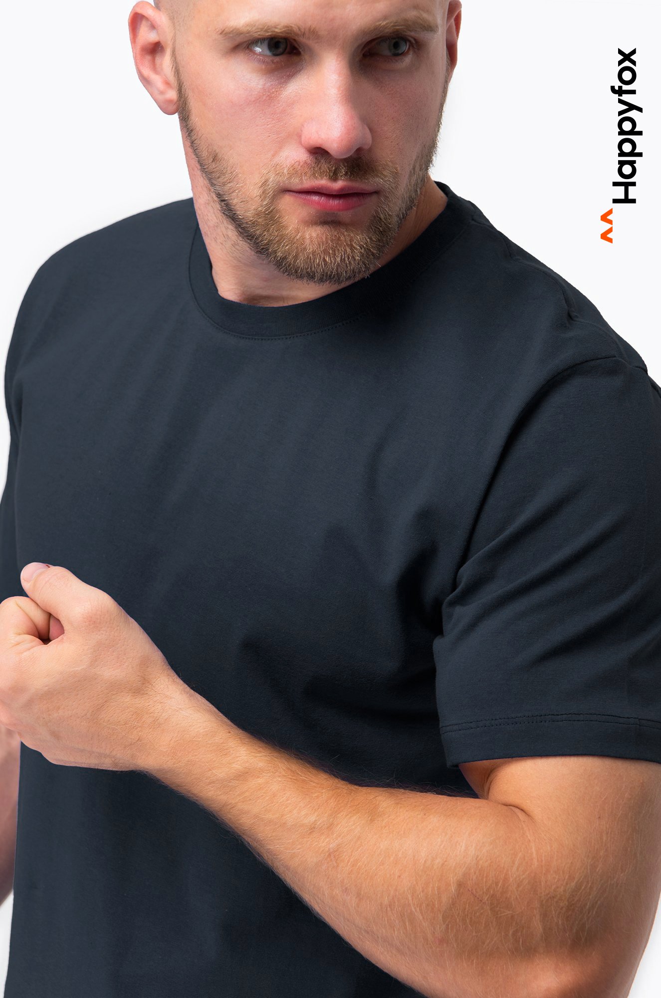 Удлиненная футболка темно синего цвета легко вписывается в любой стиль: smart casual (смарт кэжуал), спортивный и даже офисный деловой. Летняя футболка для мужчин подходит на каждый день: для расслабленных повседневных образов, для спорта, тренировок и для офиса.