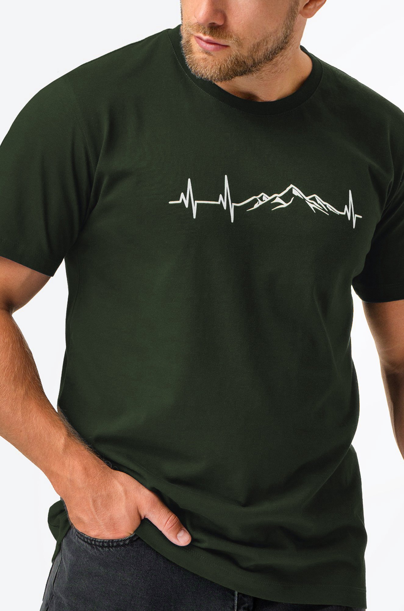 Лаконичный рисунок Кардиограмма в виде гор — главный акцент, который станет центром любого образа.