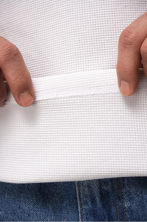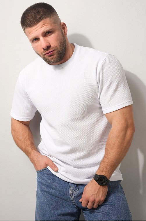 Мужская базовая футболка — идеальная основа гардероба. Вафельная футболка выглядит стильно за счёт фактурного трикотажа и отлично вписывается в кэжуал образы. Белая футболка для мужчин сочетает комфорт, практичность и минимализм.