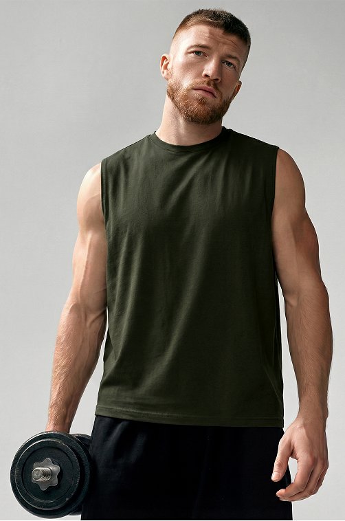 — майка цвета хаки универсальна и практична, идеальна для зала;