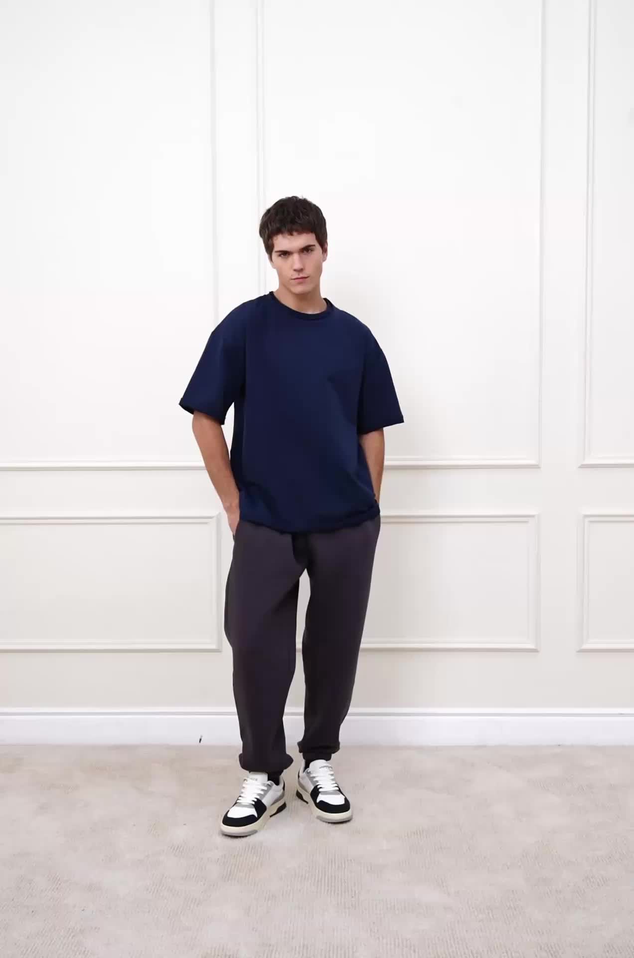 Однотонная темно-синяя футболка для мужчин подойдёт для дома, работы и спортзала.