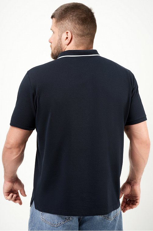 Темно-синяя футболка поло — идеальный баланс между комфортом и стильным минимализмом для повседневных образов. Мужская футболка прямого кроя с отложным воротником создаёт аккуратный и уверенный силуэт.