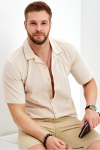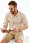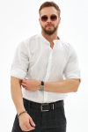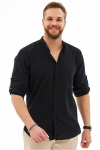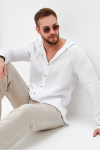 Мужская рубашка с длинным рукавом выполнена из хлопка и льна и пригодится для стильных и уверенных образов.