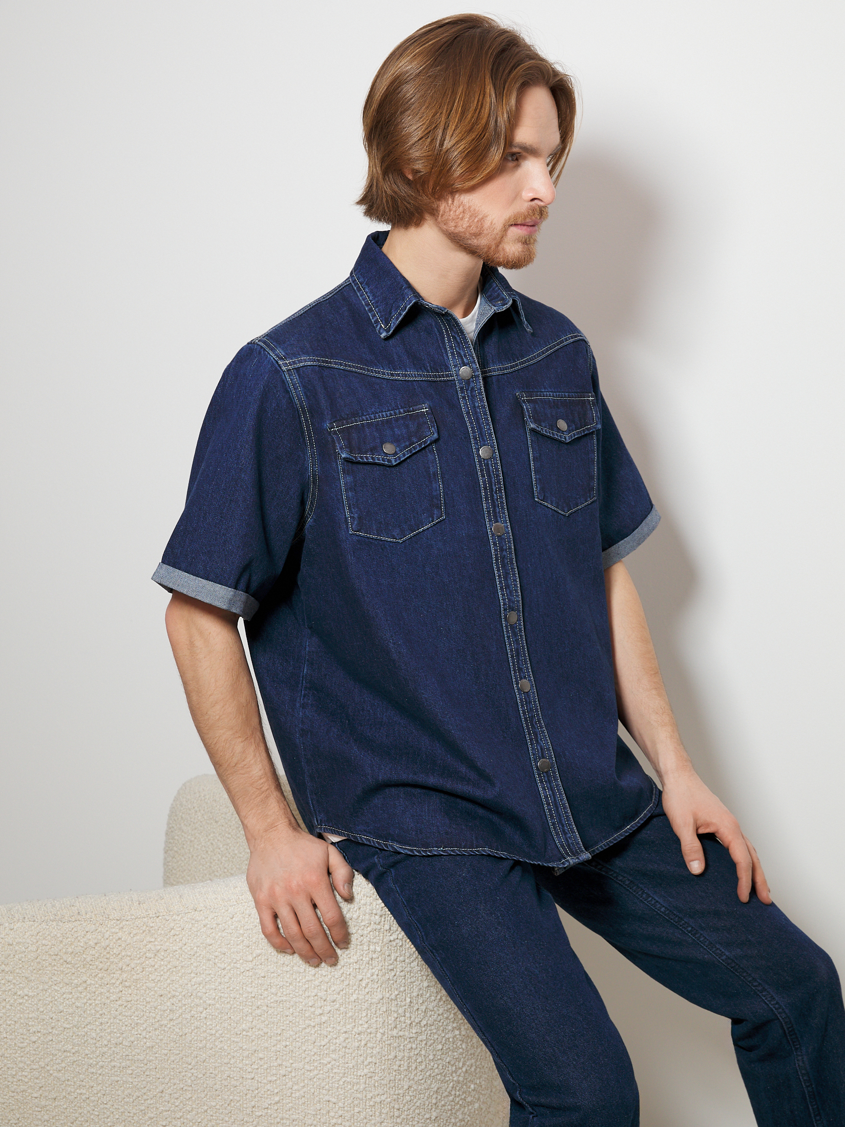 Мужская рубашка из денима MAISON DAVID 4478607, темно-синий