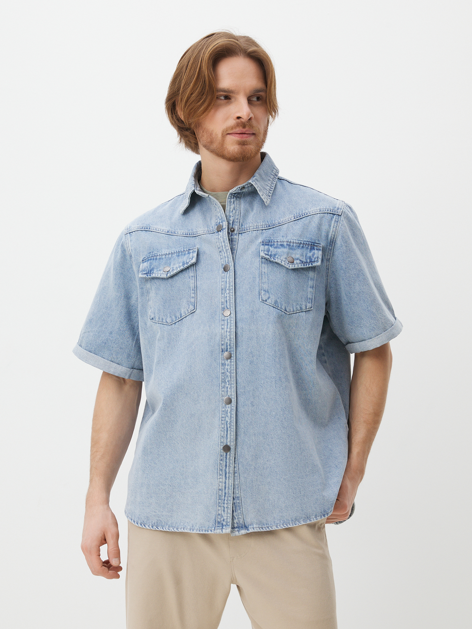 Мужская рубашка из денима MAISON DAVID 4478622, светло-голубой