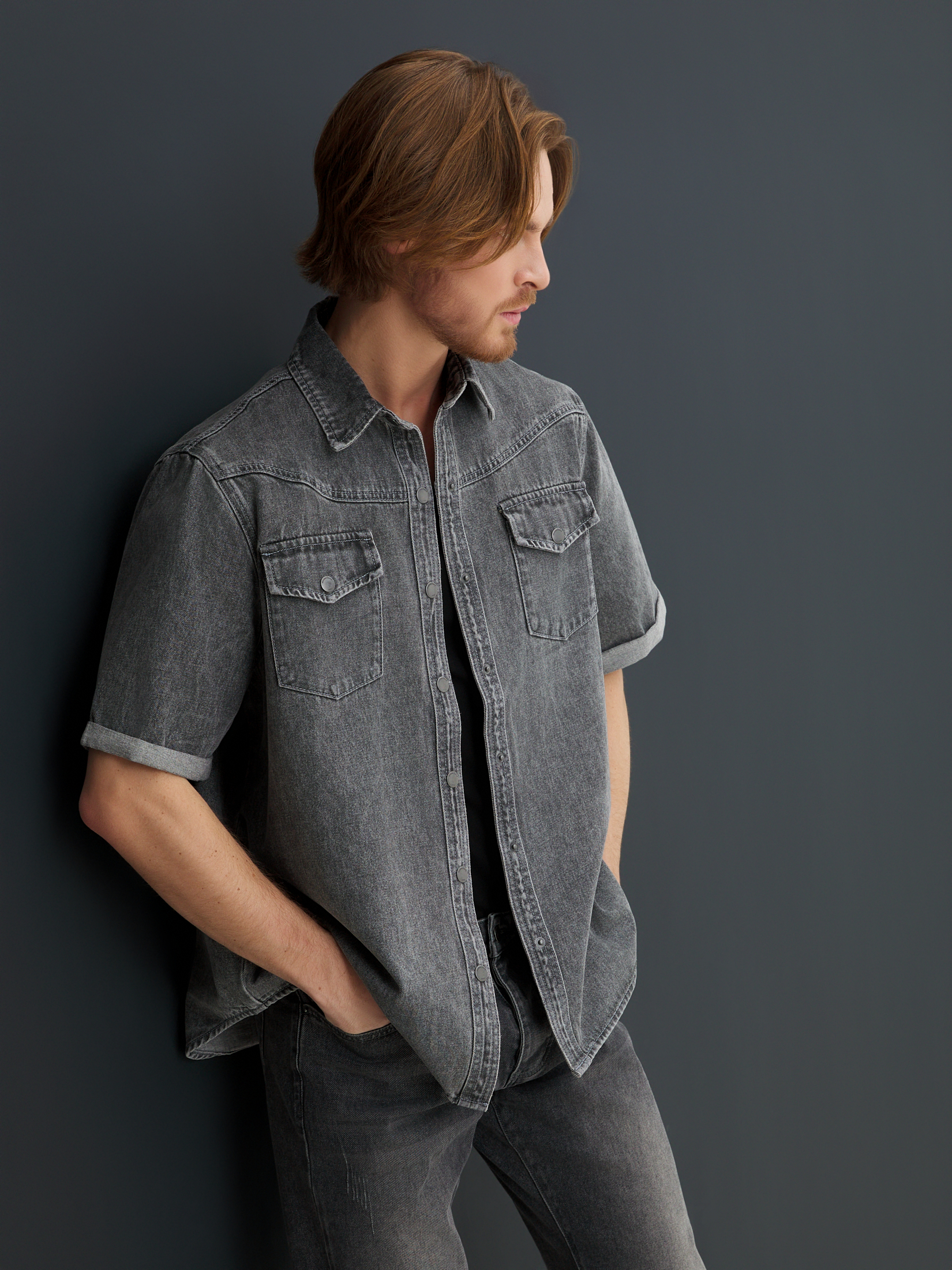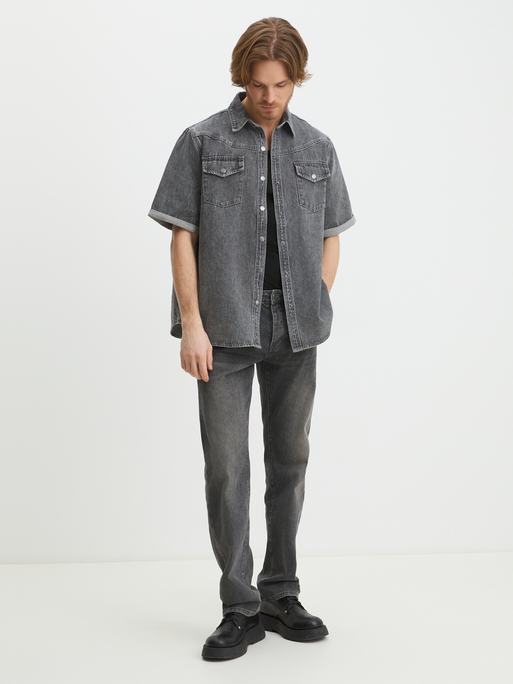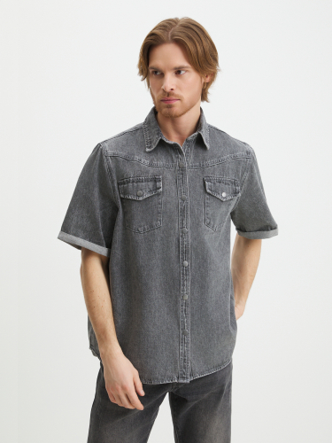 Мужская рубашка из денима MAISON DAVID 4478629, нейтральный серый