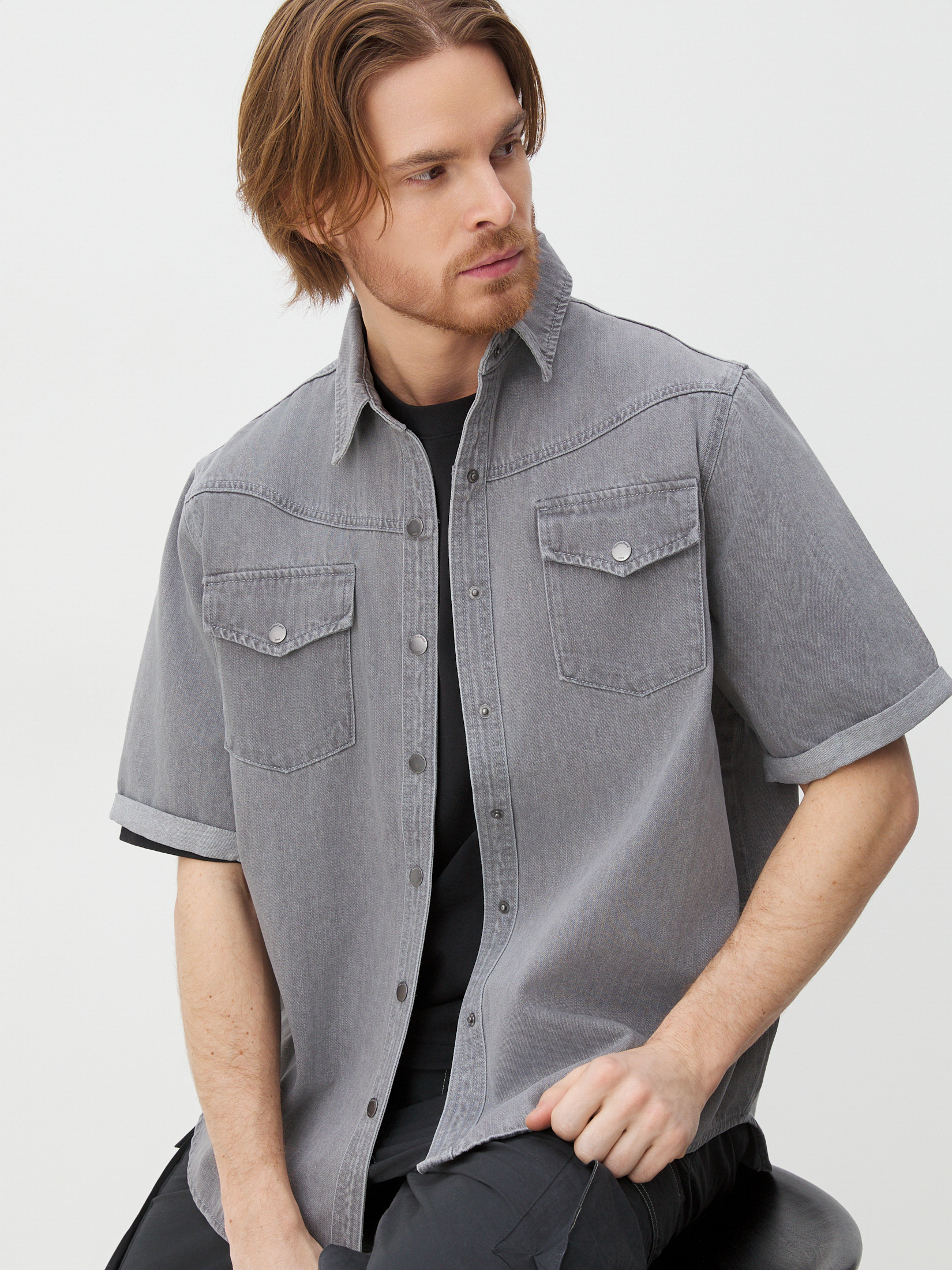 Мужская рубашка из денима MAISON DAVID 4478678, серый