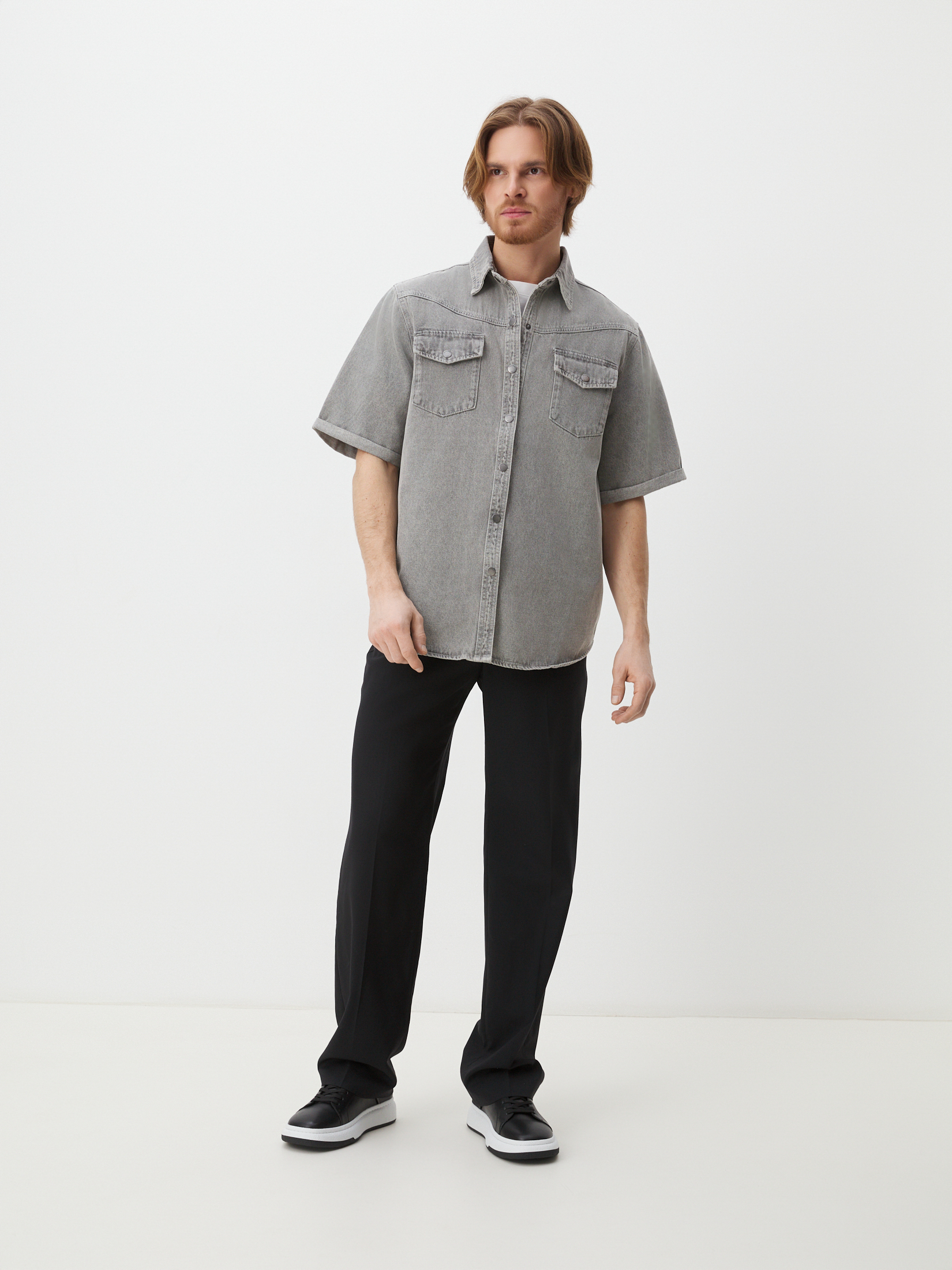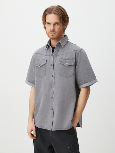 Мужская рубашка из денима MAISON DAVID 4478836, светло-серый