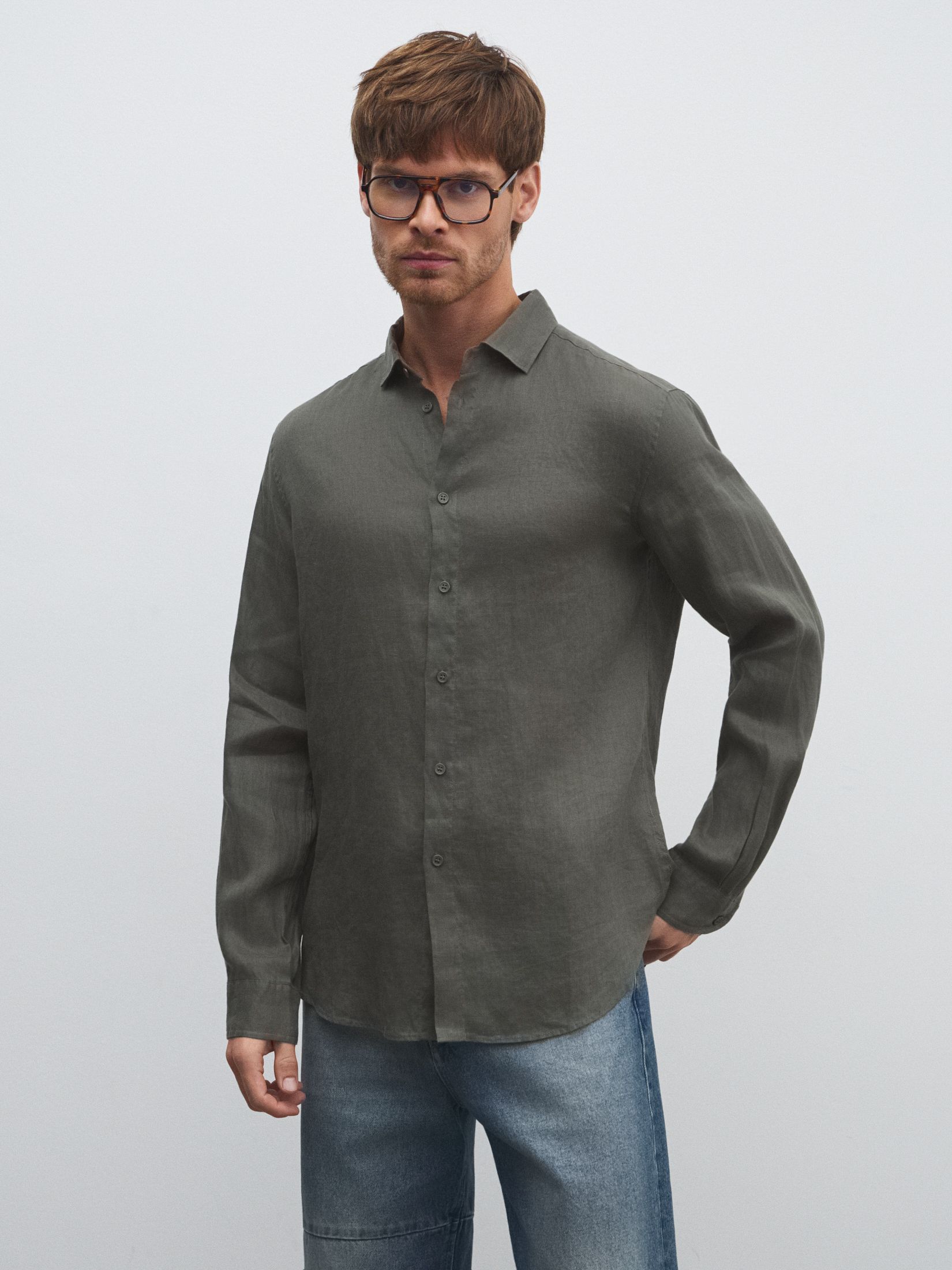 Мужская рубашка MAISON DAVID 4506441, зелено-серый