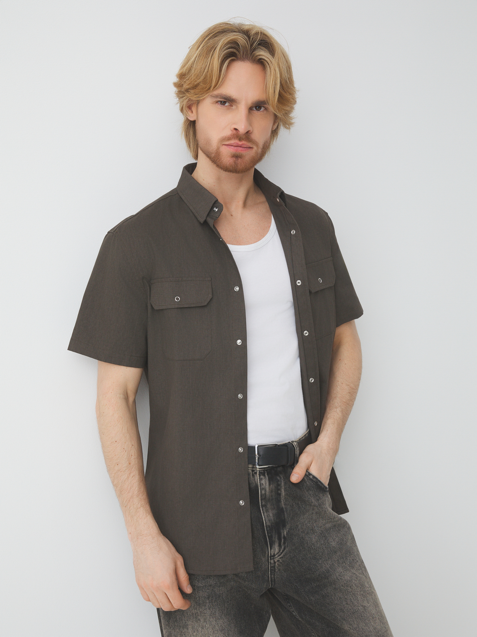 Мужская рубашка MAISON DAVID 4524204, коричнево-серый
