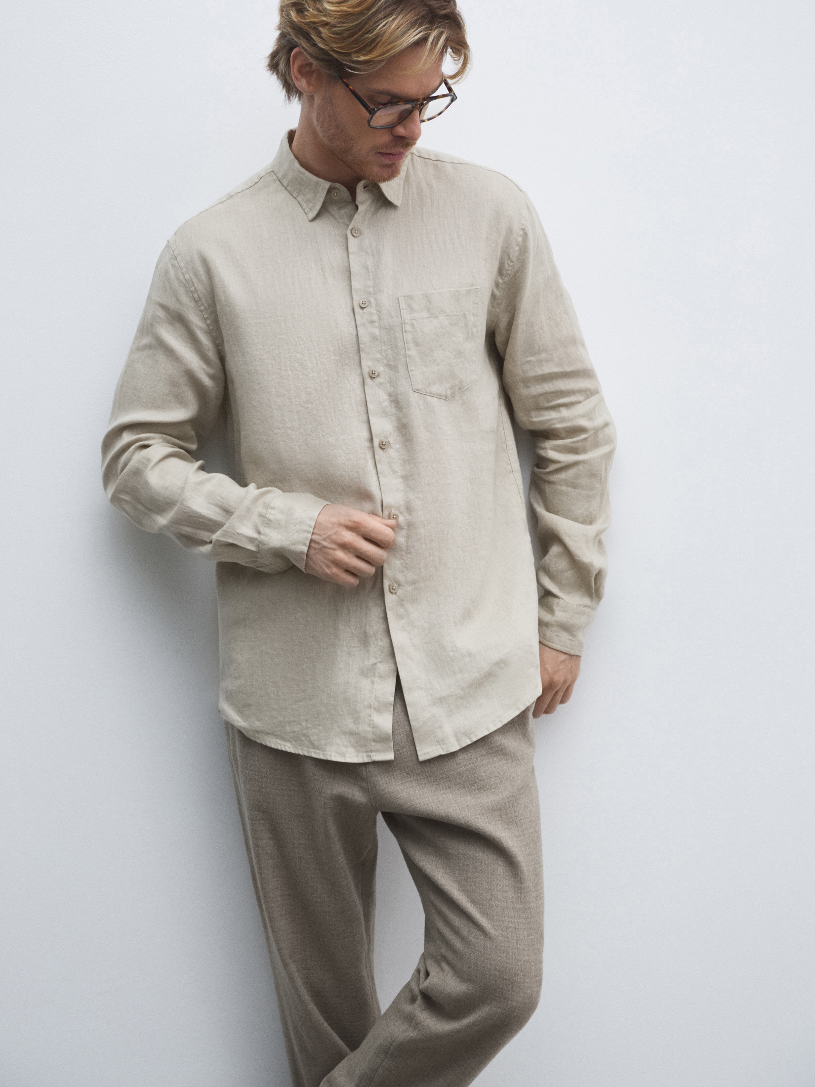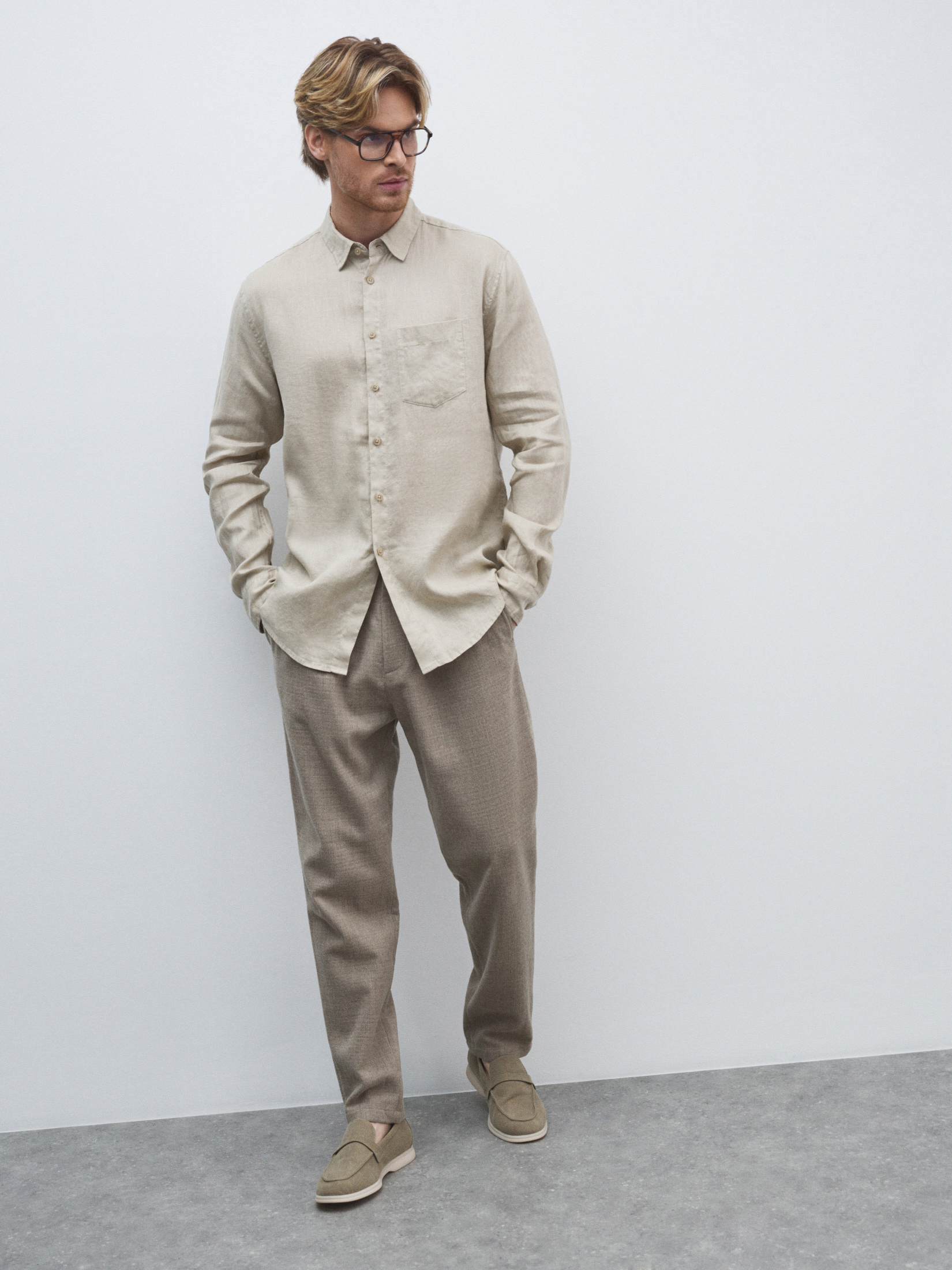 Мужская рубашка MAISON DAVID 4602584, зеленовато-бежевый