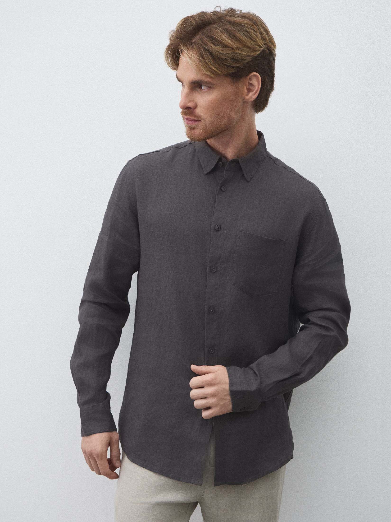 Мужская рубашка MAISON DAVID 4602654, коричневато-серый