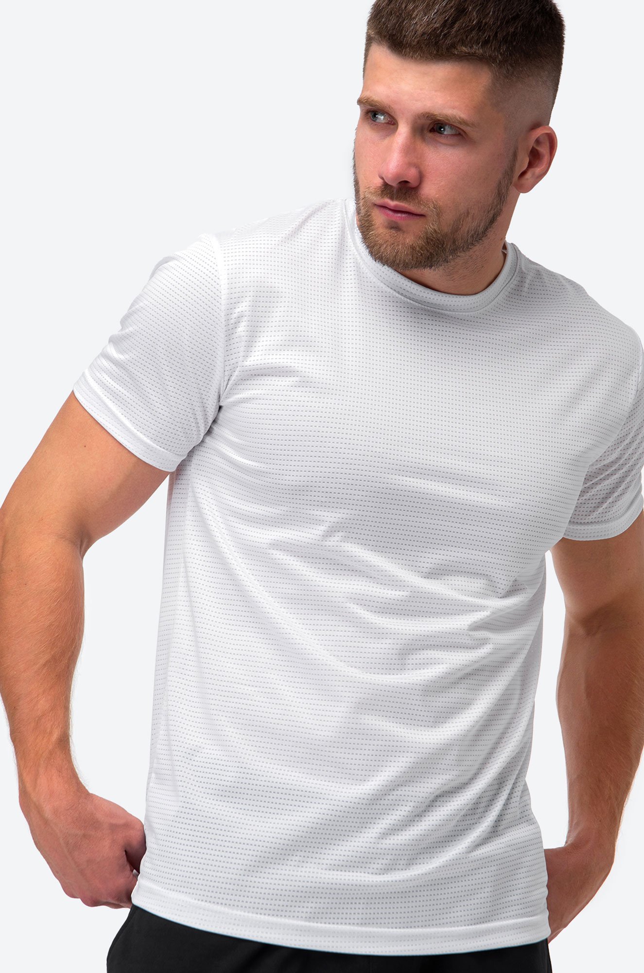 В спортивной одежде продумана каждая деталь. Легкая ткань с перфорацией создает необходимую вентиляцию. Мягкая горловина и аккуратные ровные швы обеспечивают отсутствие натираний и раздражений.