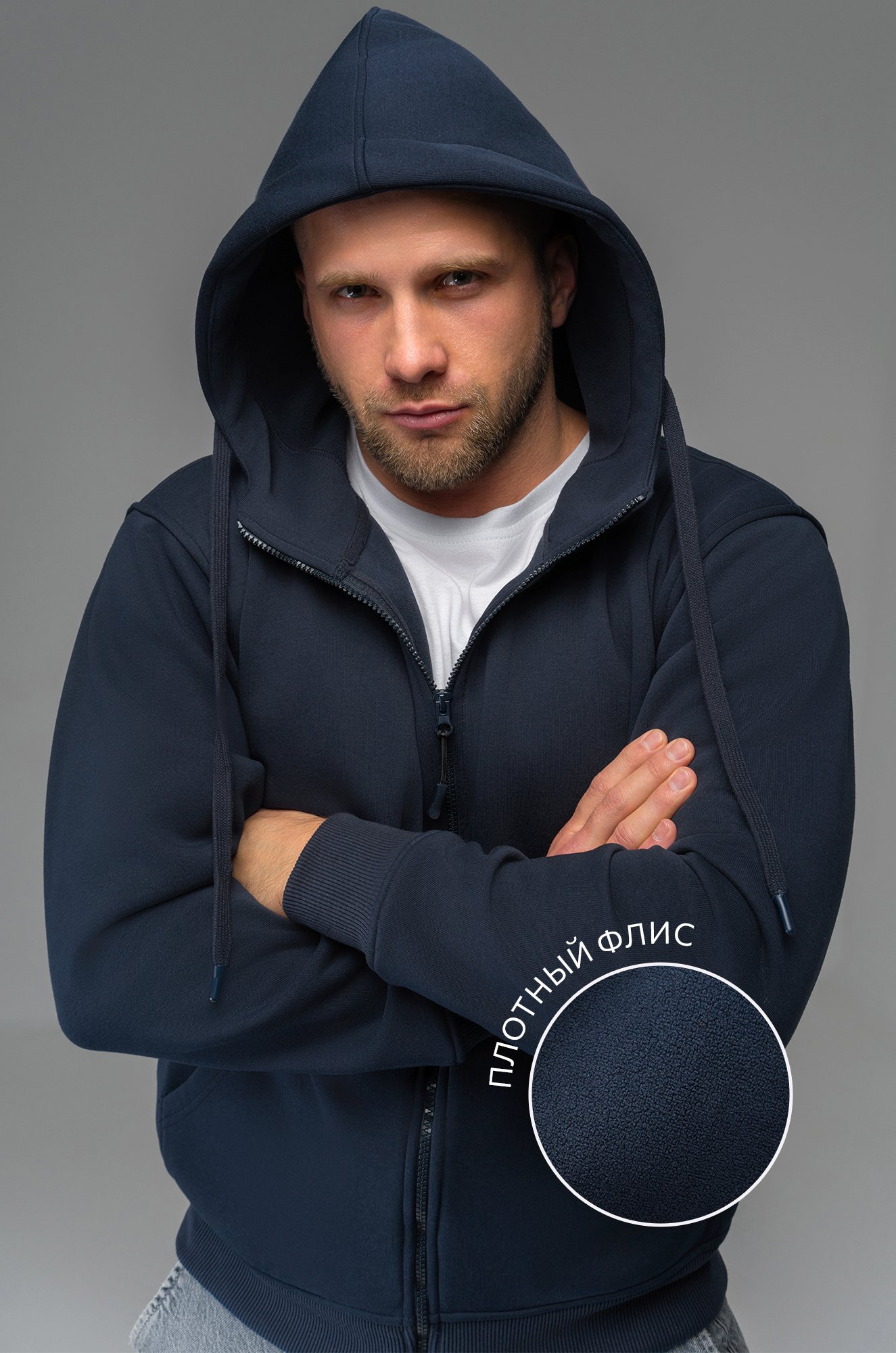 Мужское зип худи с начесом на флисе — идеальный выбор для прохладных дней, сочетающий стиль, комфорт и функциональность.