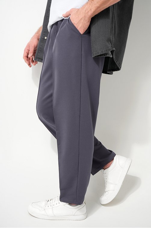 Темно-серые мужские брюки — гармоничное сочетание комфорта и лаконичности. Прямые штаны формируют собранный, уверенный силуэт и легко вписываются в повседневный стиль.
