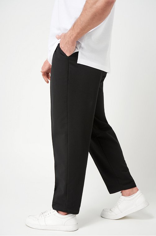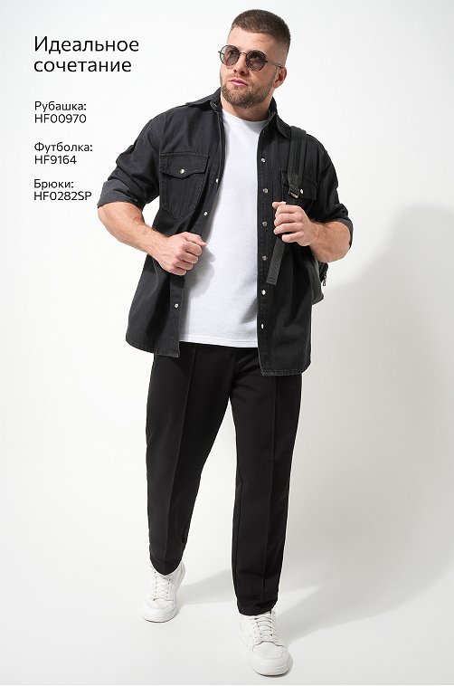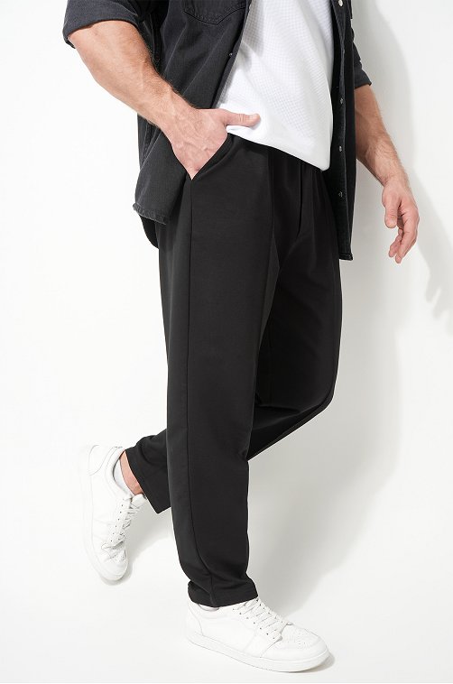 Черные мужские брюки — гармоничное сочетание комфорта и лаконичности. Прямые штаны формируют собранный, уверенный силуэт и легко вписываются в повседневный стиль.