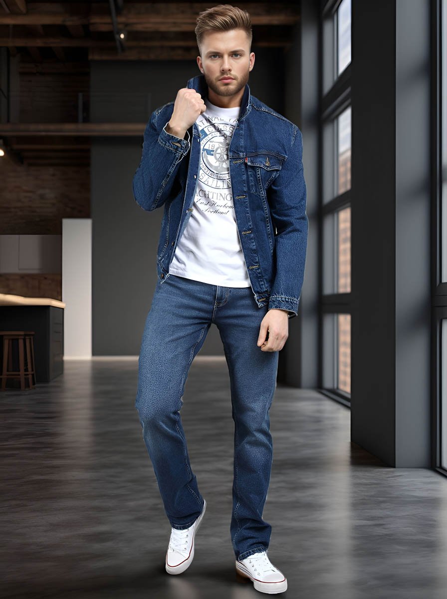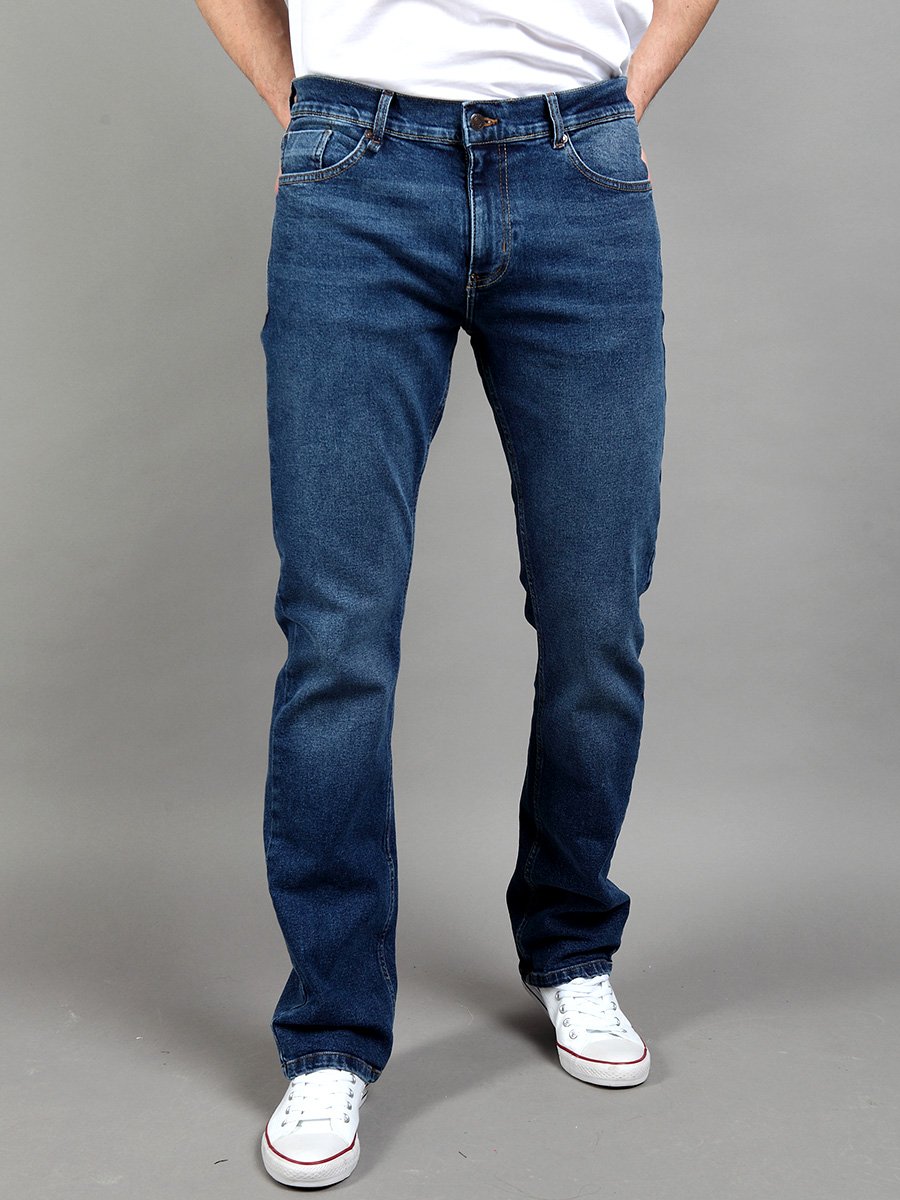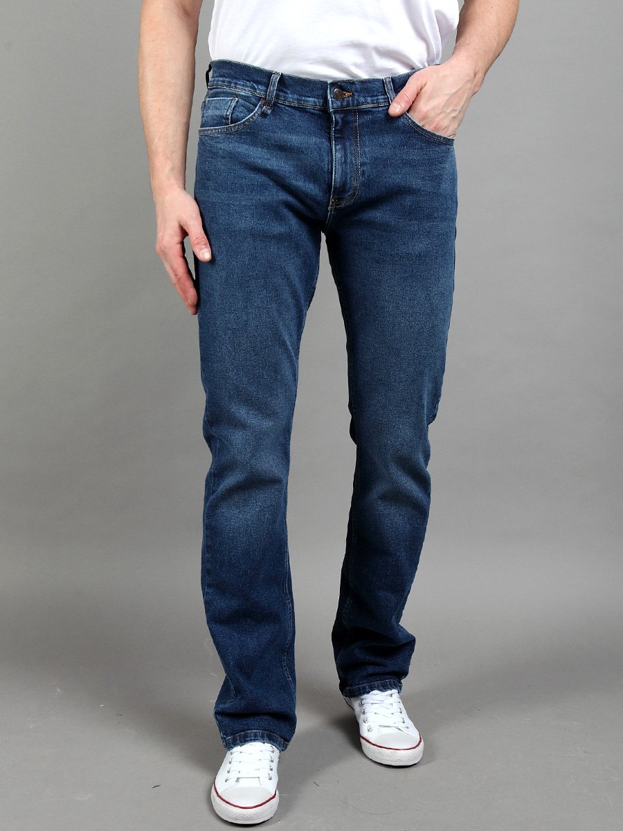 Мужские классические джинсы с пятью карманами. Посадка Slim fit (облегающие по бедру), средняя высота талии. Застежка на молнии. Немного зауженные к низу. Выполнены из слабоэластичной ткани denim comfort stretch. Средняя стирка со слабовыраженными потёртостями и "усами" спереди и потёртостями сзади.