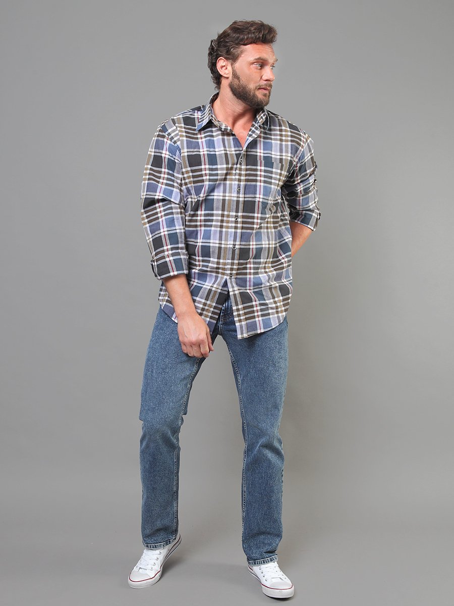 Мужские классические джинсы с пятью карманами. Посадка Regular fit (полуоблегающие по бедру), высокая талия, немного заужены к низу. Застежка на молнии. Выполнены из слабоэластичной ткани denim comfort stretch. Специальная средняя стирка  "towel wash", мраморный эффект. Параметры указаны для размера 32. Длина внутреннего шва   - 83 см.