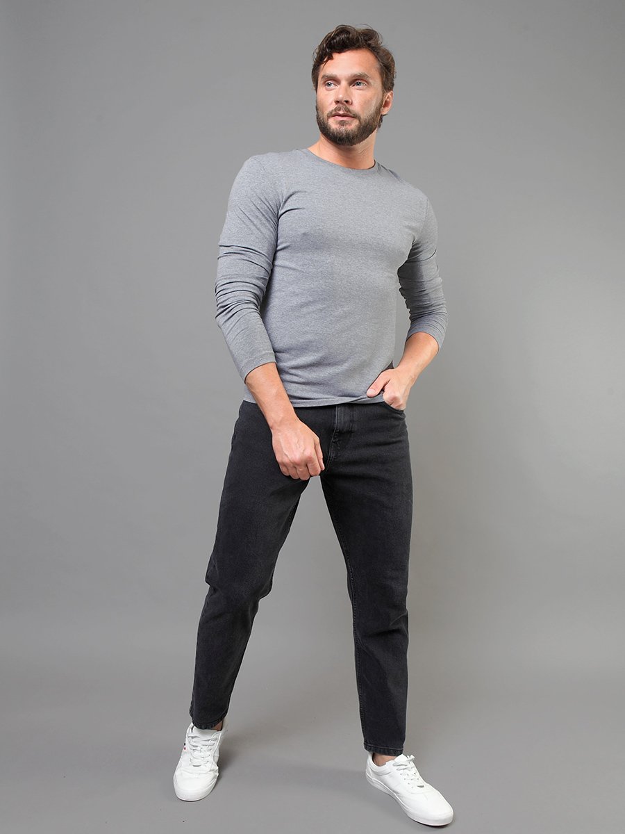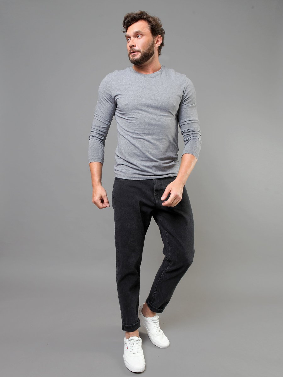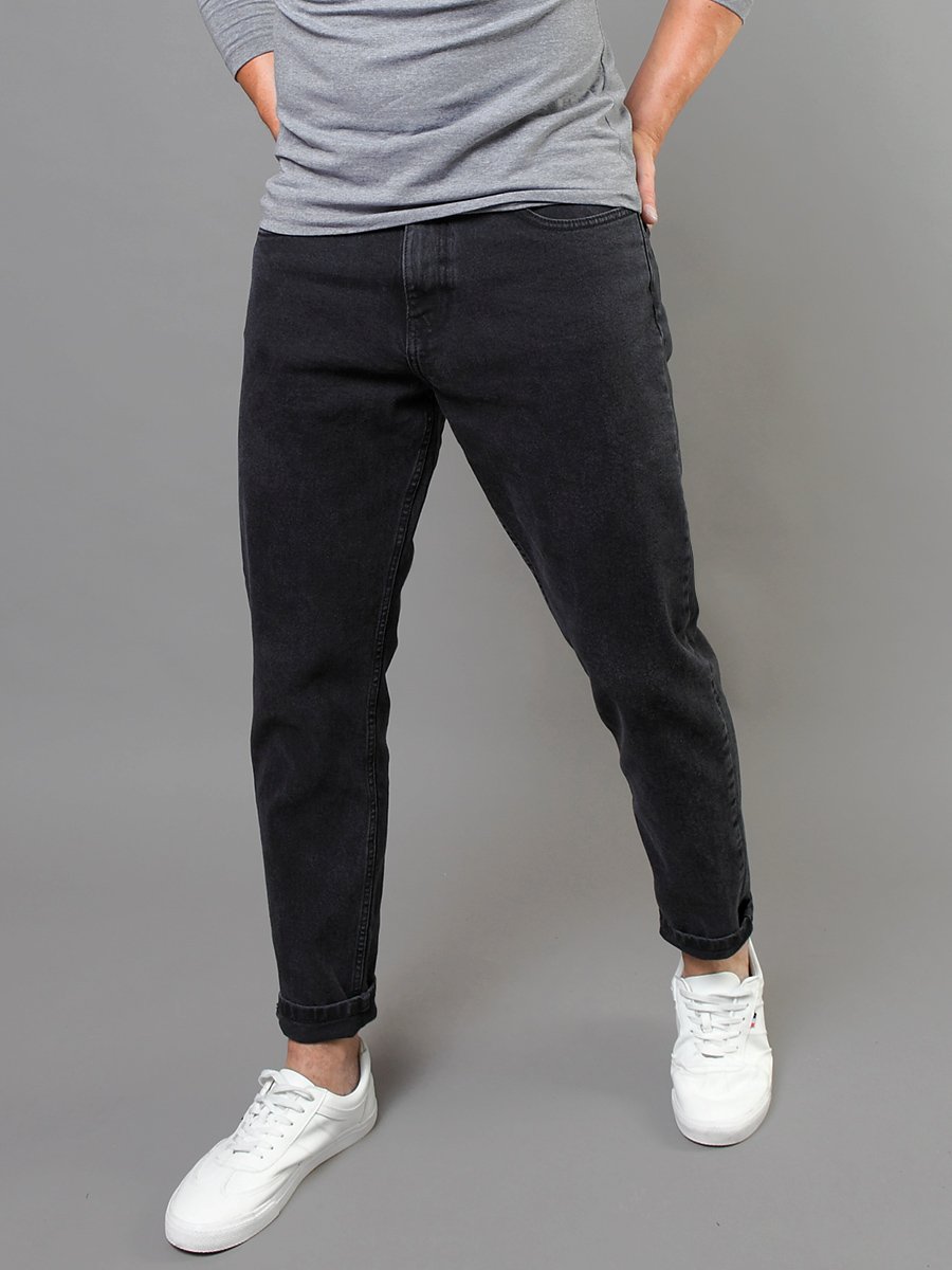 Мужские ретро джинсы с пятью карманами с использованием лучших традиций 90-х. Посадка Dad fit (Папины джинсы), высокая талия спереди и сзади, свободные в бедре и зауженные к низу укороченной длины. Застежка на молнии. Выполнены из слабоэластичной ткани denim comfort stretch, цвет ткани Black/Black (лицевая и изнаночная стороны ткани черные).Темная стирка с потёртостями только по швам.