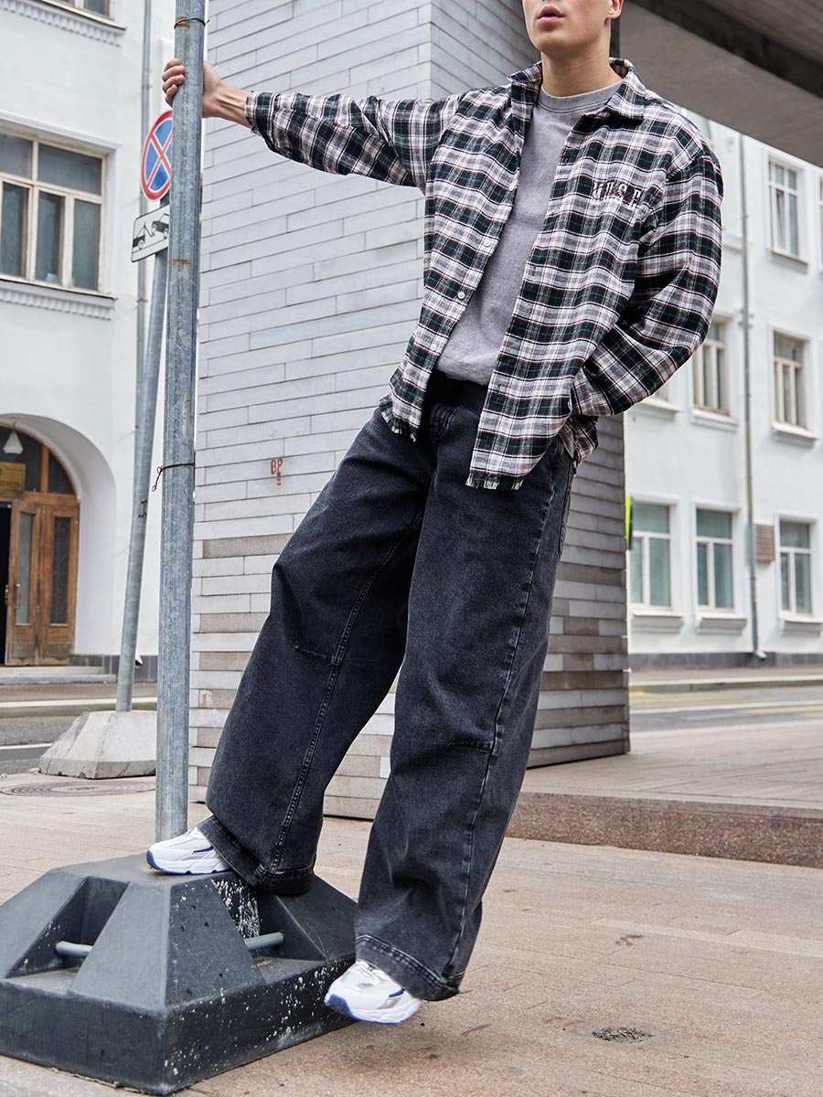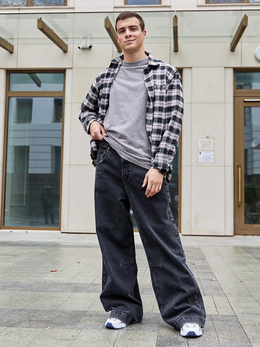 Самый модный силуэт сезона! Эти ультрамодные мешковатые джинсы - must-have для создания смелого городского образа. Удобные, стильные и невероятно популярные. Мешковатый крой (Baggy Fit) с высокой посадкой на талии и широкими штанинами по всей длине. Рекомендуется носить на бедрах. Застежка на молнии. Ткань с добавлением эластана (Comfort Stretch) тянется и обеспечивает дополнительную свободу движений. Две вытачки под коленом для создания дополнительного объема, большие задние карманы, прямой  разутюженный боковой шов создают современный дизайн и добавляют образу расслабленную бунтарскую эстетику. Классическая темная стирка "Stone Wash", которая легко комбинируется с любой одеждой.