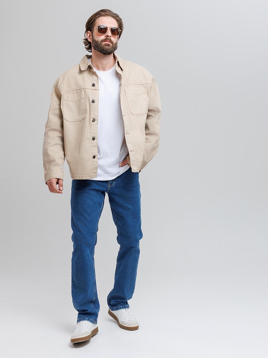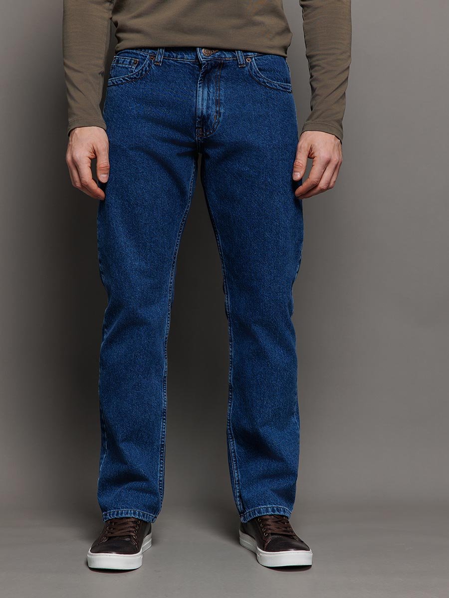 Мужские классические джинсы с пятью карманами. Посадка Regular fit (полуоблегающие по бедру), средняя высота талии. Застежка на молнии. Немного зауженные к низу. Выполнены из традиционной хлопковой ткани denim. Классическая средняя стирка "stone wash".