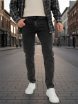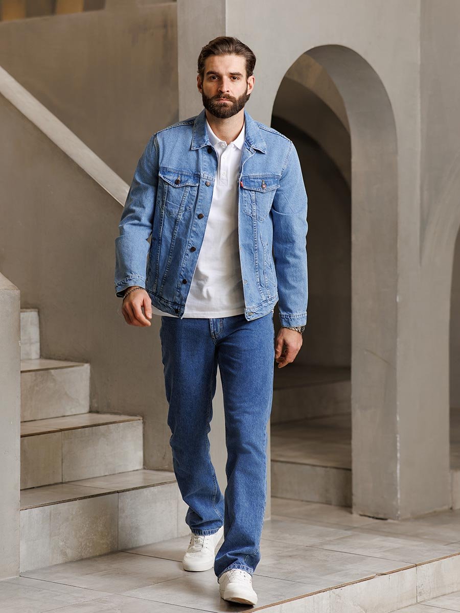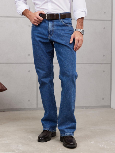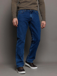 Мужские классические джинсы с пятью карманами. Посадка Regular fit (полуоблегающие по бедру), высокая талия. Застежка на молнии. Немного заужены в колене и по низу. Выполнены из традиционной хлопковой ткани denim. Классическая средняя стирка "stone wash".