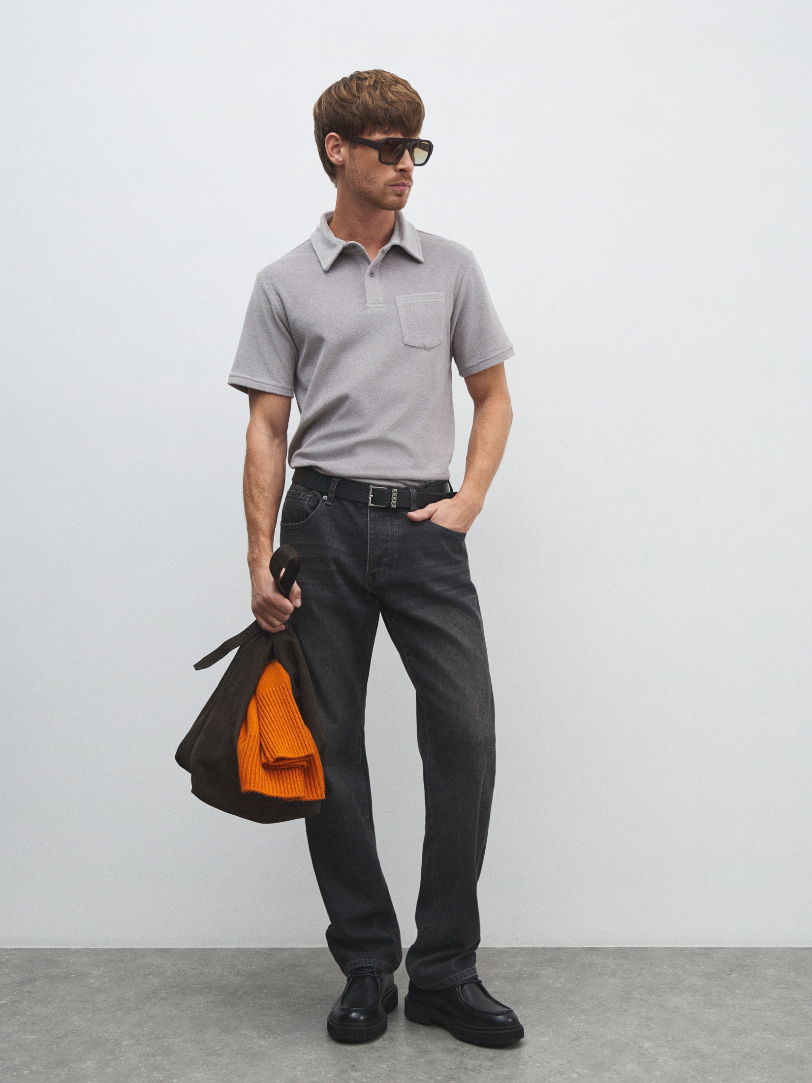 Мужское поло MAISON DAVID 4506555, бежевато-серый