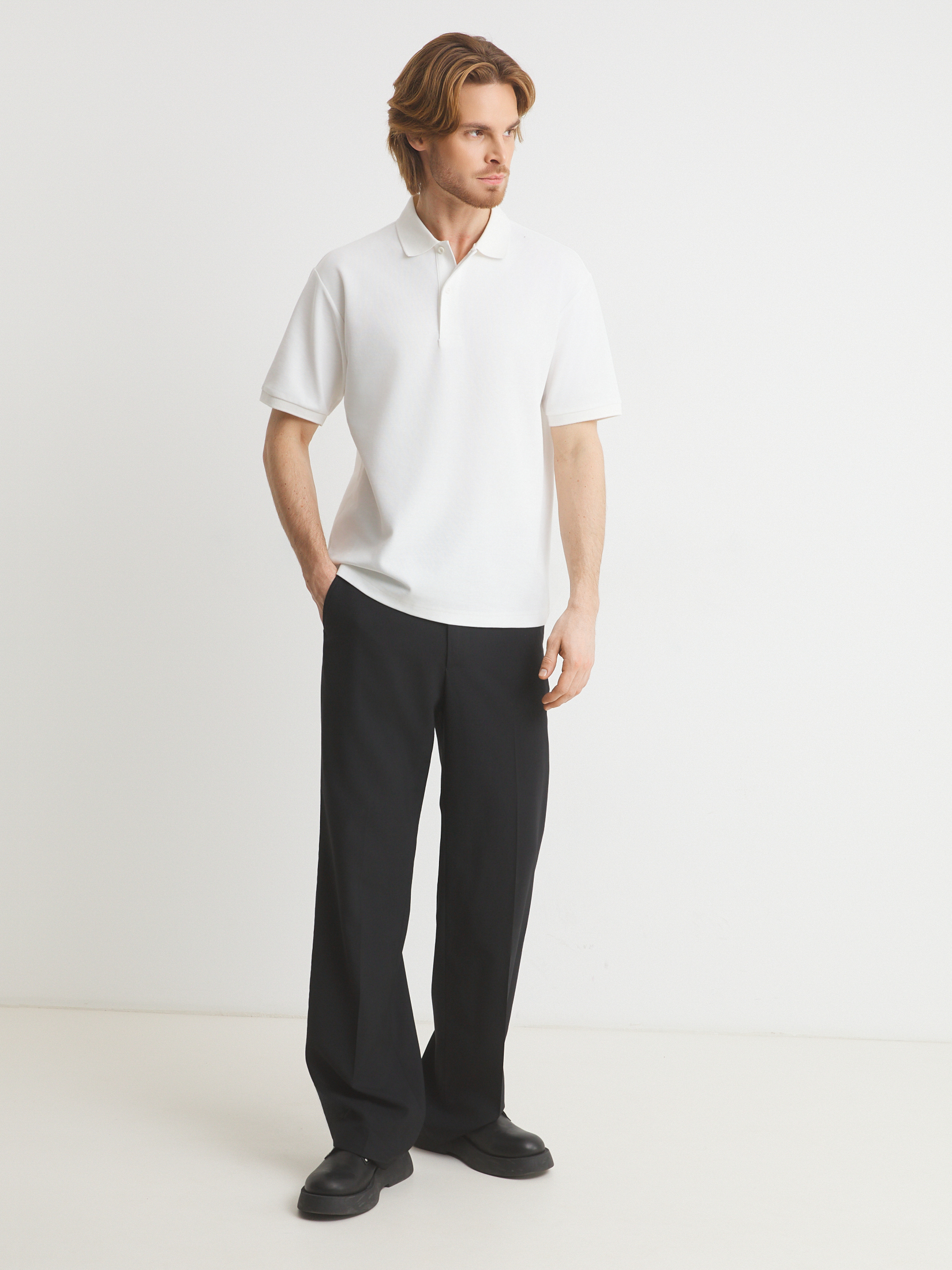 Мужское поло MAISON DAVID 4553688, молочно-белый