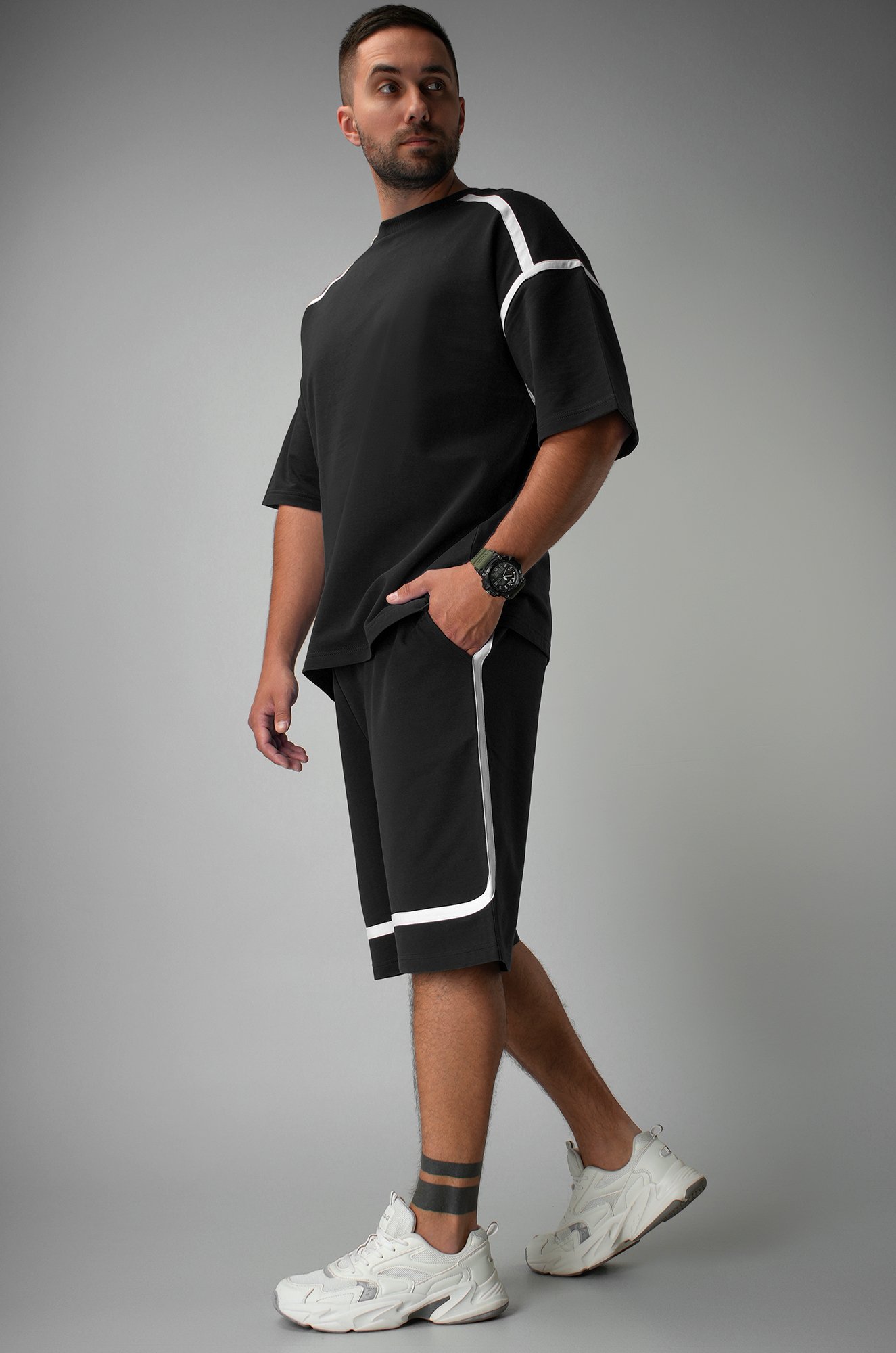 Мужской костюм с шортами — стильный и удобный вариант на каждый день. Черный костюм идеально подходит для тренировок, фитнеса, прогулок и повседневного отдыха.