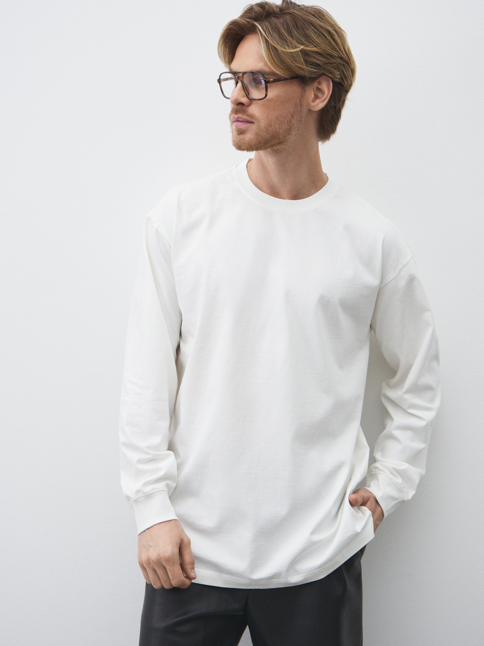 Мужской лонгслив MAISON DAVID 4525409, молочно-белый