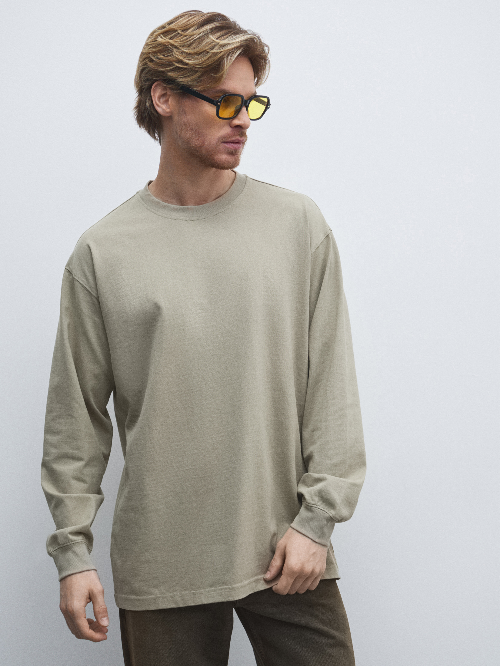 Мужской лонгслив MAISON DAVID 4525416, зелено-бежевый