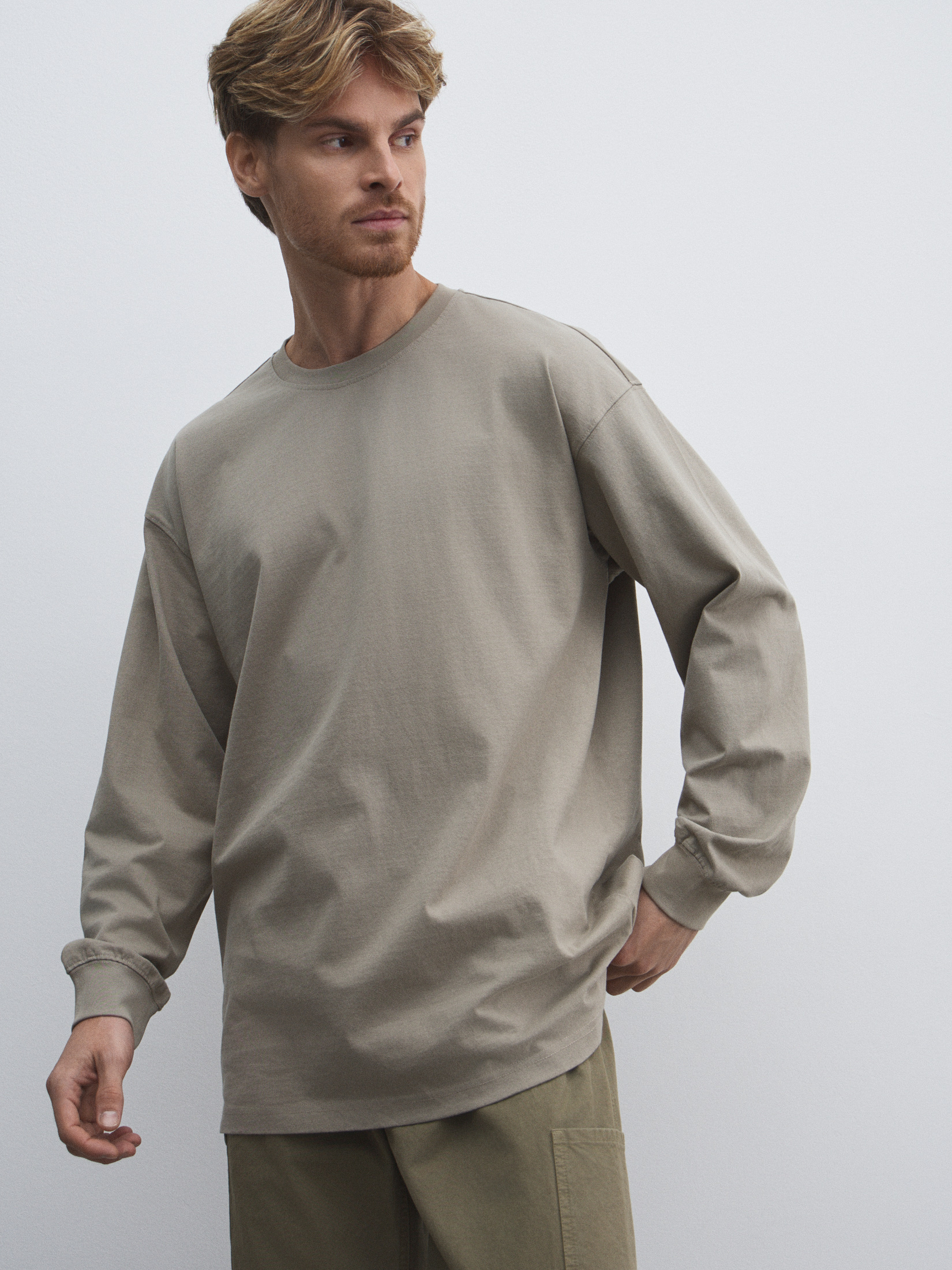 Мужской лонгслив MAISON DAVID 4525451, серо-бежевый