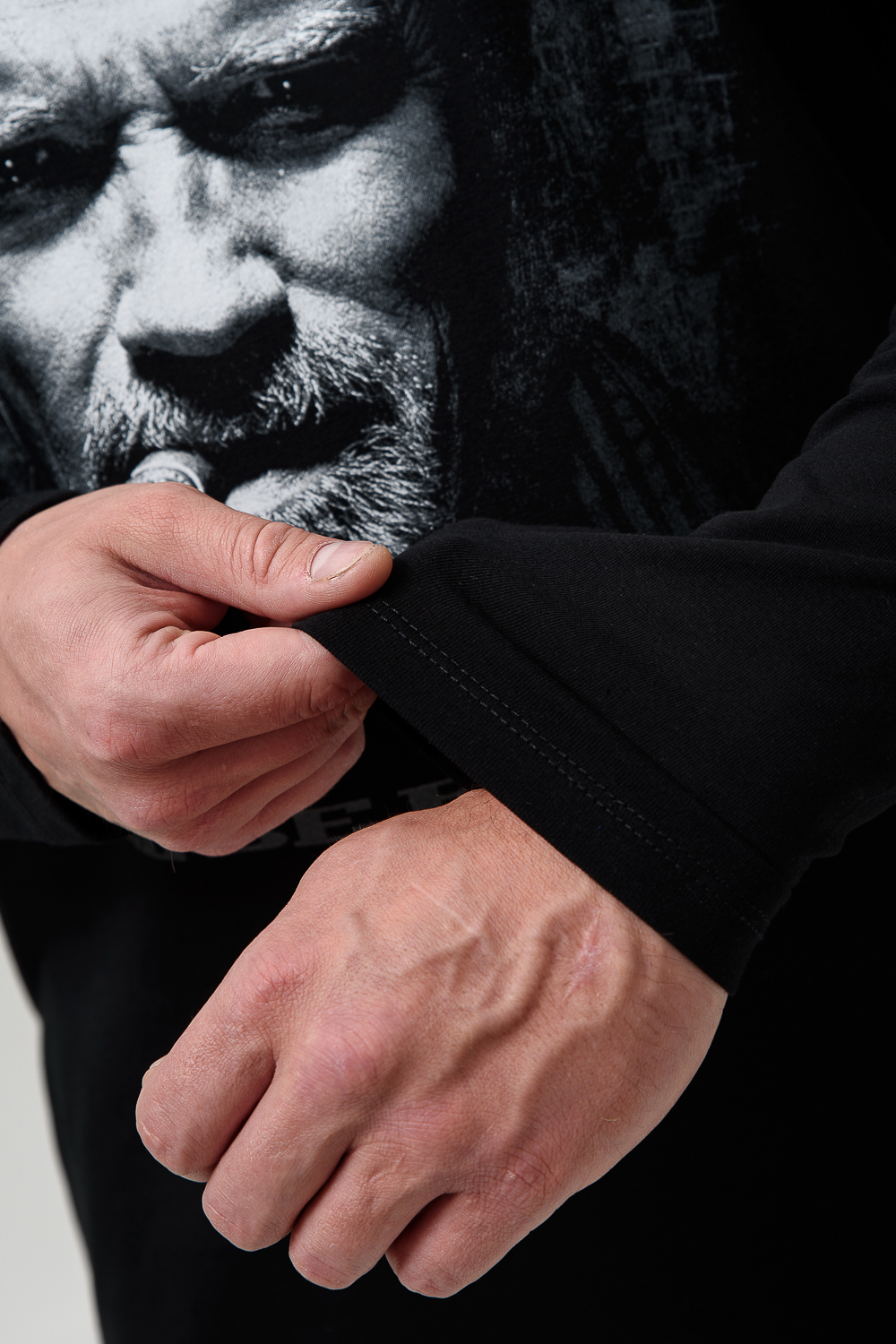 Лонгслив снова в моде и прочно обосновался в базовом гардеробе современного человека. Удобная трикотажная кофта представляет собой футболку с длинным рукавом, которую можно использовать как самостоятельный элемент, так и носить под пиджак, толстовку или рубашку. Лонгслив выполнен из высокоплотного хлопкового трикотажа и является невероятно комфортным и удобным. Футболка с длинными рукавами имеет прямой базовый крой и классическую линию плеча. Лонгслив - это неформальный стиль, когда на футболку можно надеть клетчатую рубашку и сочетать с кедами и джинсами. За счет натуральной ткани лонгслив можно носить в качестве домашней одежды или нательного белья, одежды для сна, тренировочной спортивной одежды и военной экипировки. Если вы хотите силуэт оверсайз нужно взять на размер или два больше, ориентируйтесь по таблице замеров. Цвет: черный+Шварценеггер; Материал: кулирка с лайкрой;кулирка с лайкрой; Состав: 92% хлопок, 8% эластан.