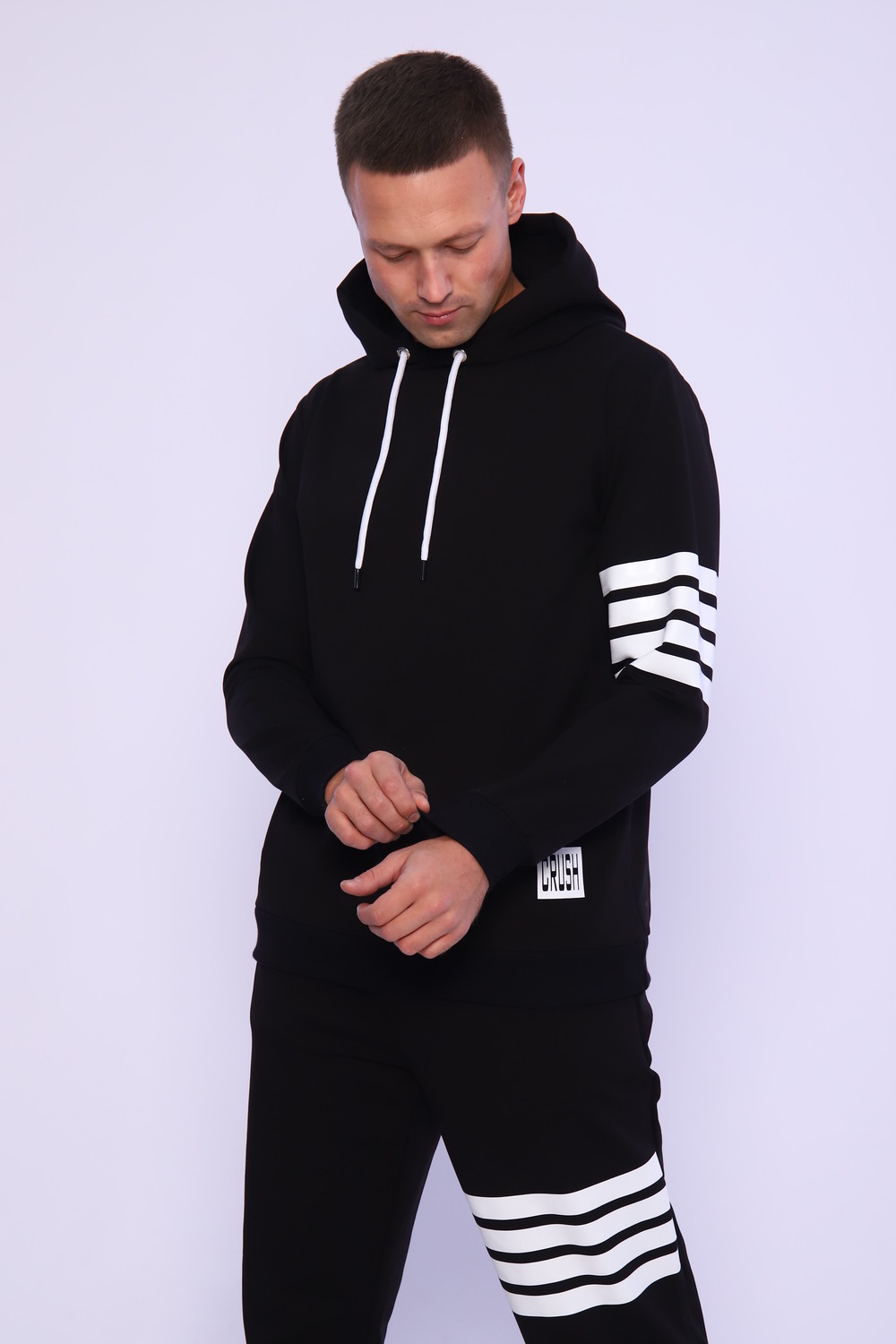Спортивный мужской костюм отлично подойдет для тренировок дома и игр на улице. Этот модный, мягкий трикотажный костюм с прямыми и аккуратными швами. Толстовка прямого силуэта с двойным капюшоном и карманом кенгуру. Брюки на манжете с карманами в боковых швах. Цвет: серый меланж; Материал: футер 2-х нитка;футер 2-х нитка; Состав: 72% хлопок, 23% ПЭ, 5% лайкра.