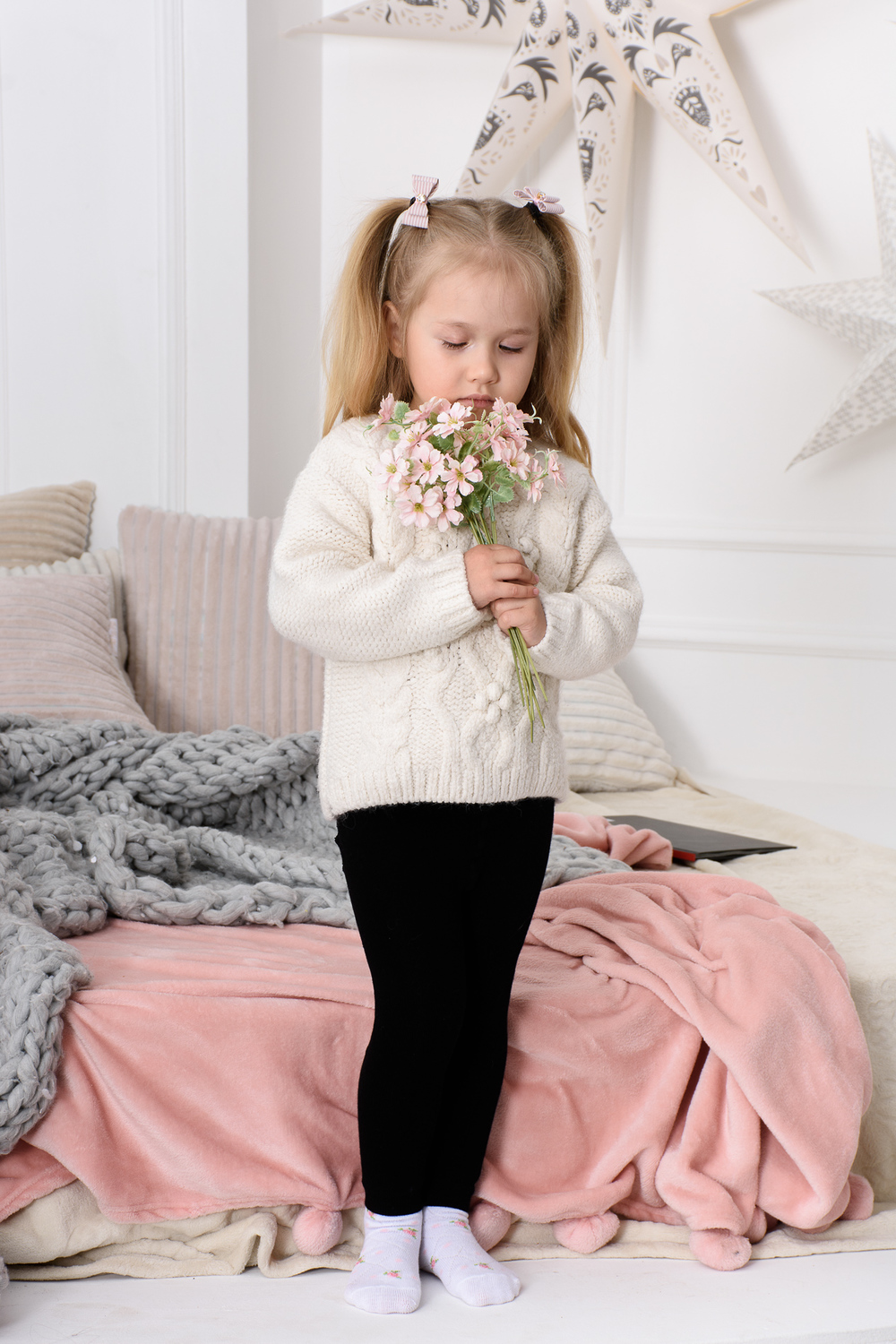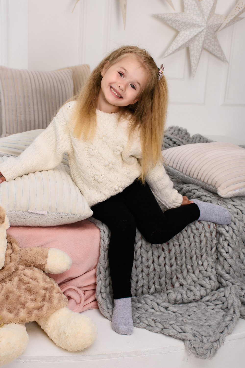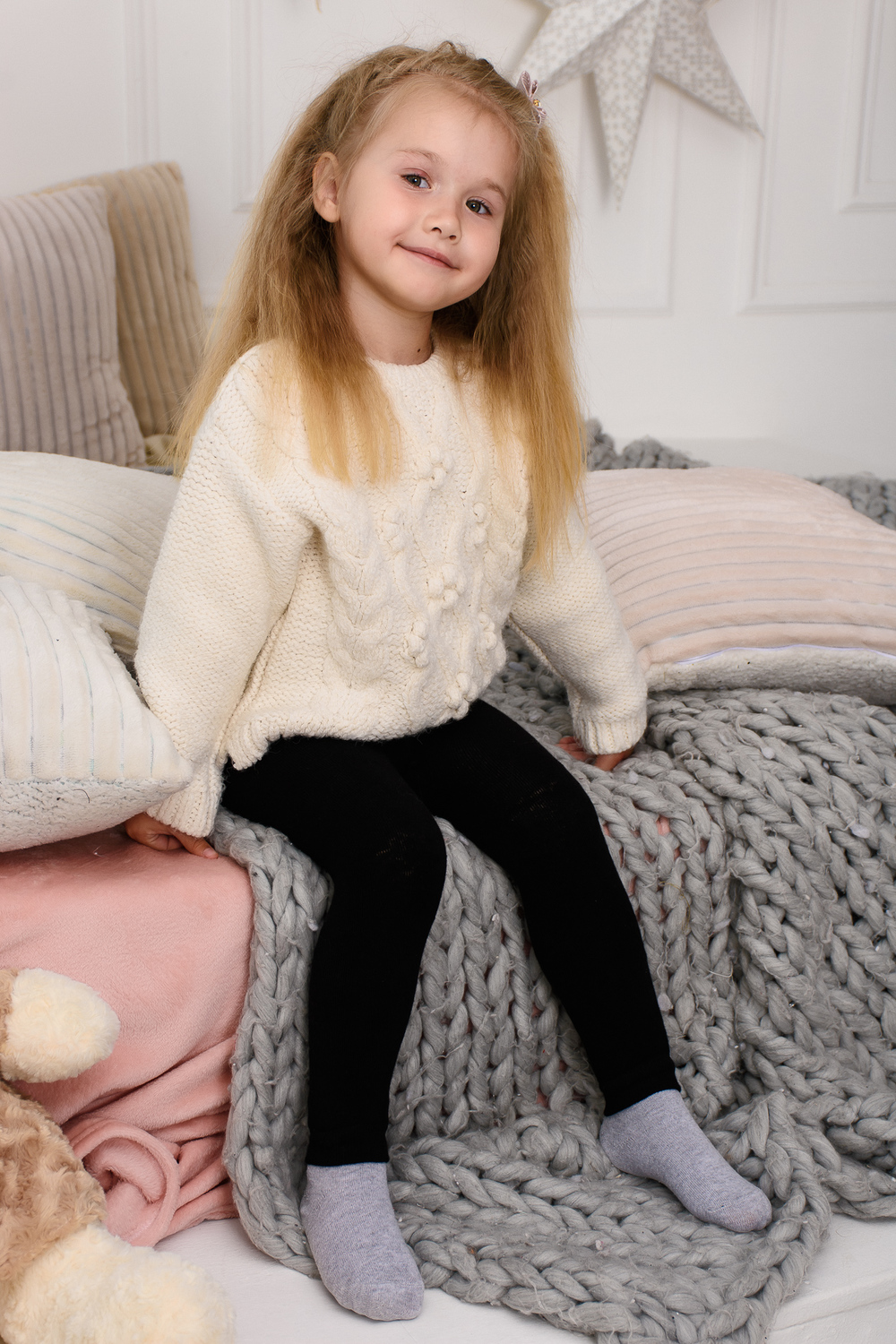 Однотонные леггинсы для девочек. Черная расцветка, длина до щиколоток, внизу манжет Цвет: черный; Материал: вязаный трикотаж;вязаный трикотаж; Состав: 75% хлопок, 17% ПА, 8% эластан.