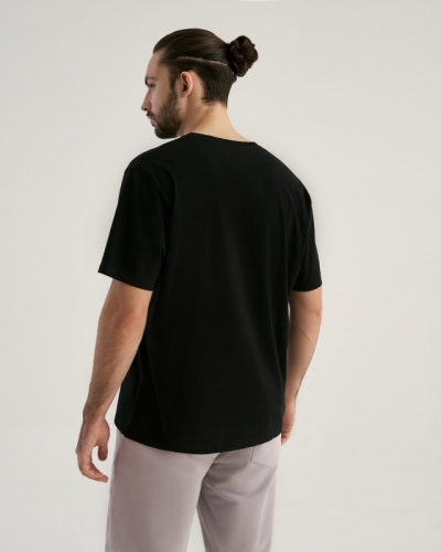 ХЛОПОК 100%Футболка прямого силуэта. Укрепление бейкой плечевых швов и горловины спинки. Горловина из рибаны/ по переду горловины отстрочка