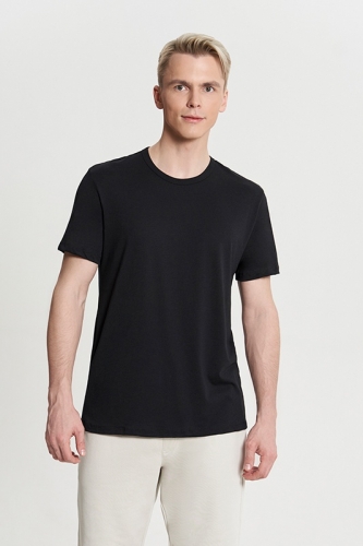 БАМБУК 50%; ХЛОПОК 50%Классическая мужская футболка прямого силуэта. Горловина окантована рибаной.