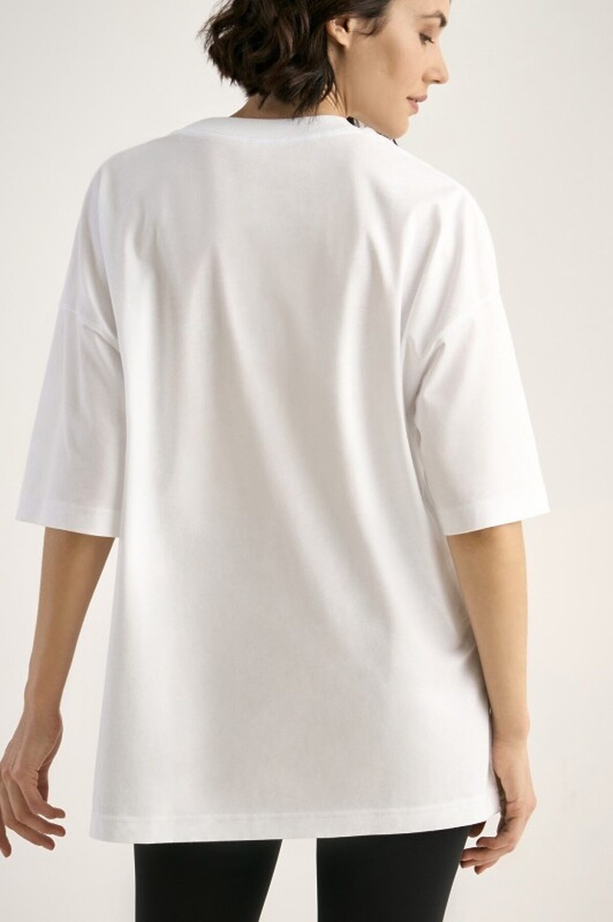 Футболка свободного силуэта. Спущенное плечо. Горловина из двух деталей, из рибаны. Состав: ХЛОПОК 100%
