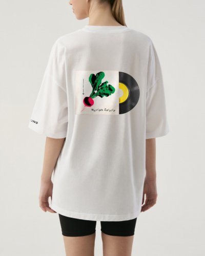 Футболка свободного силуэта. Спущенное плечо. Горловина из двух деталей, из рибаны. Состав: ХЛОПОК 100%