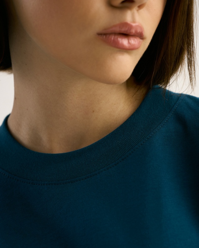 Футболка свободного силуэта. Спущенное плечо. Горловина из двух деталей, из рибаны. Состав: ХЛОПОК 100%