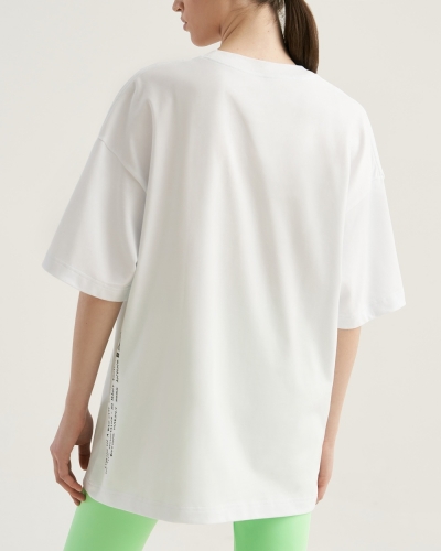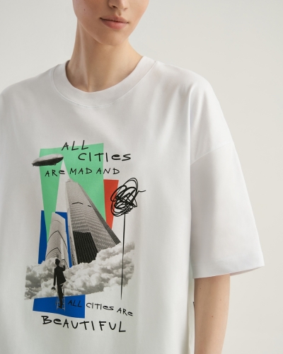 ХЛОПОК 100%Футболка свободного силуэта. Спущенное плечо. Горловина из двух деталей/ из рибаны. Укрепление бейкой плечевых швов и горловины спинки.