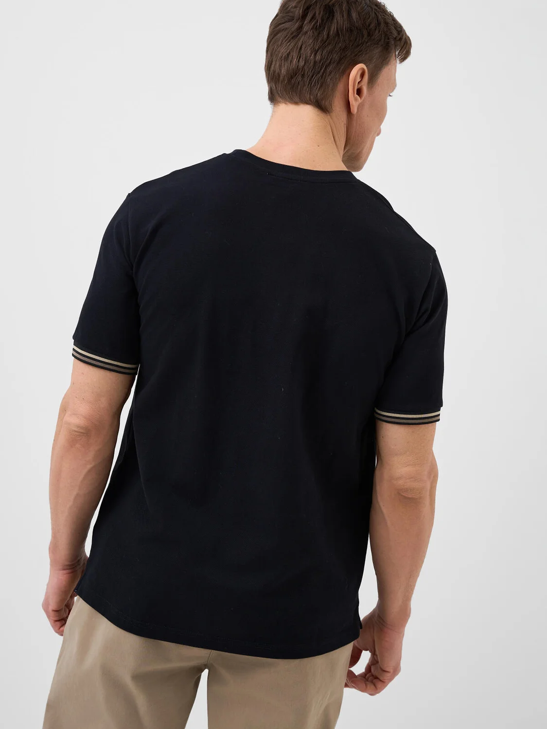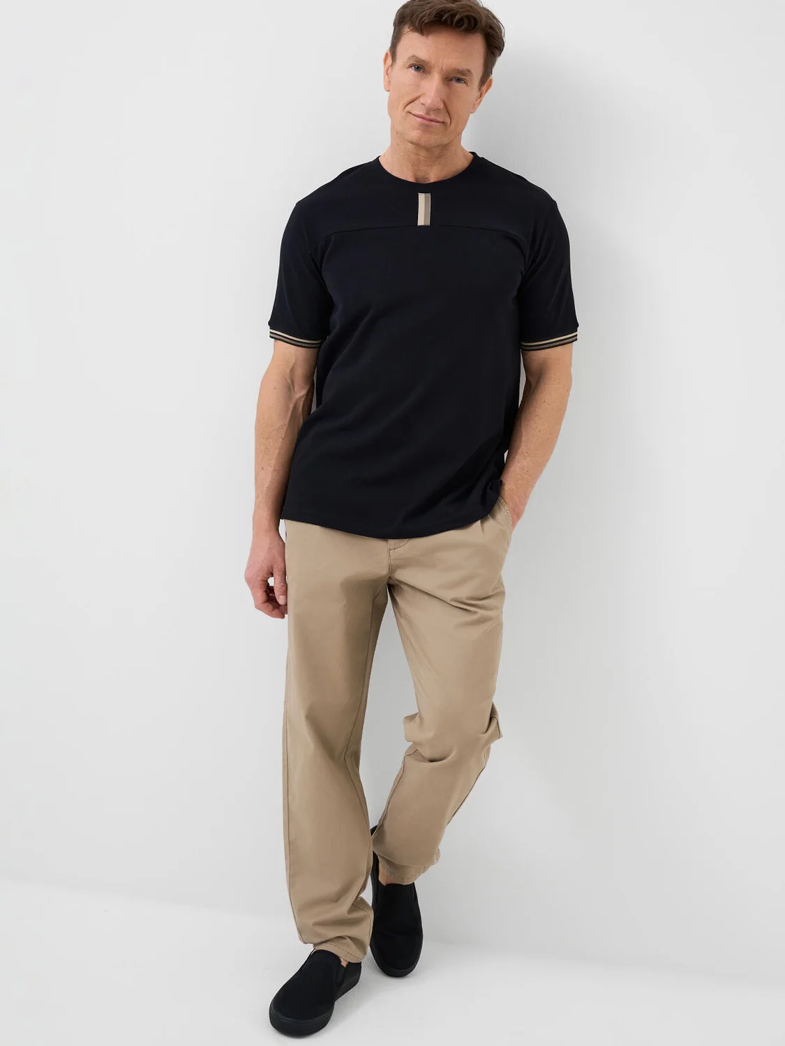 Мужская футболка. Модель прямого кроя, выполнена из эластичного хлопкового трикотажа пике. Горловина и рукава обработаны эластичным рибом.