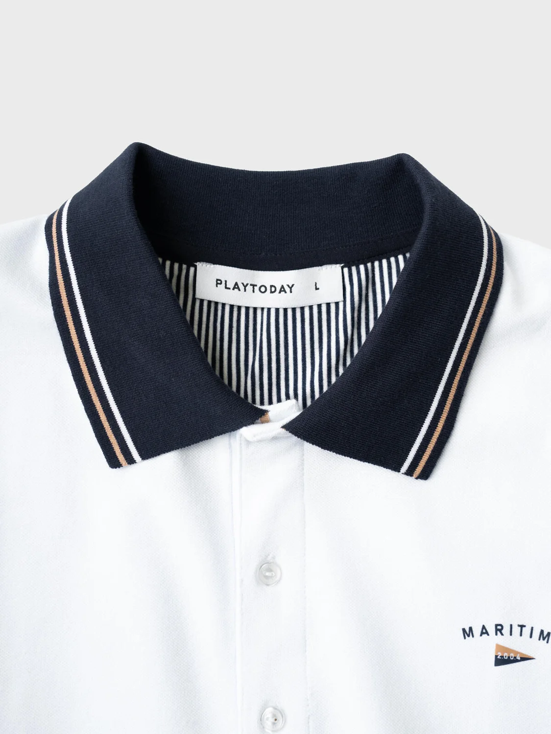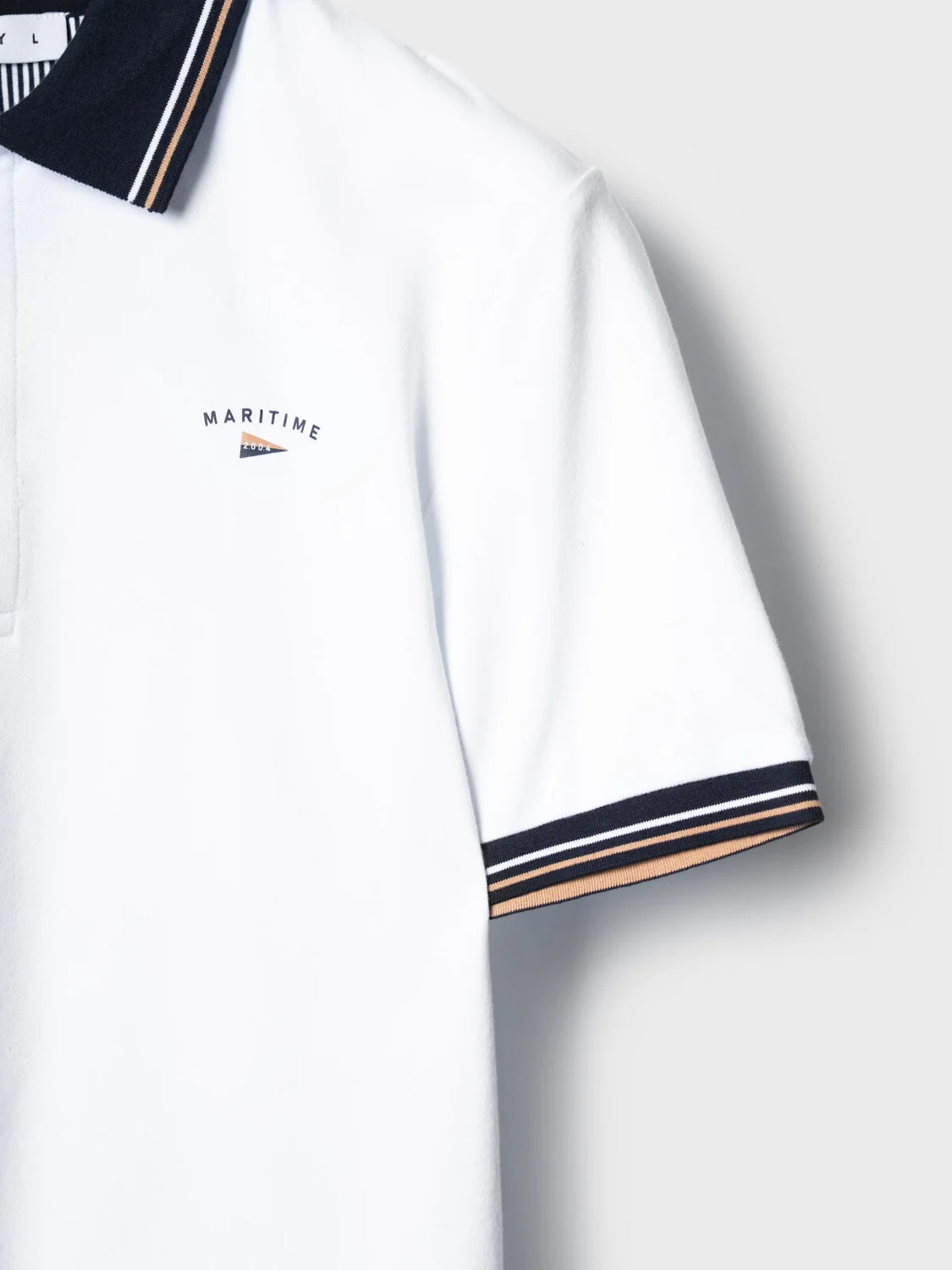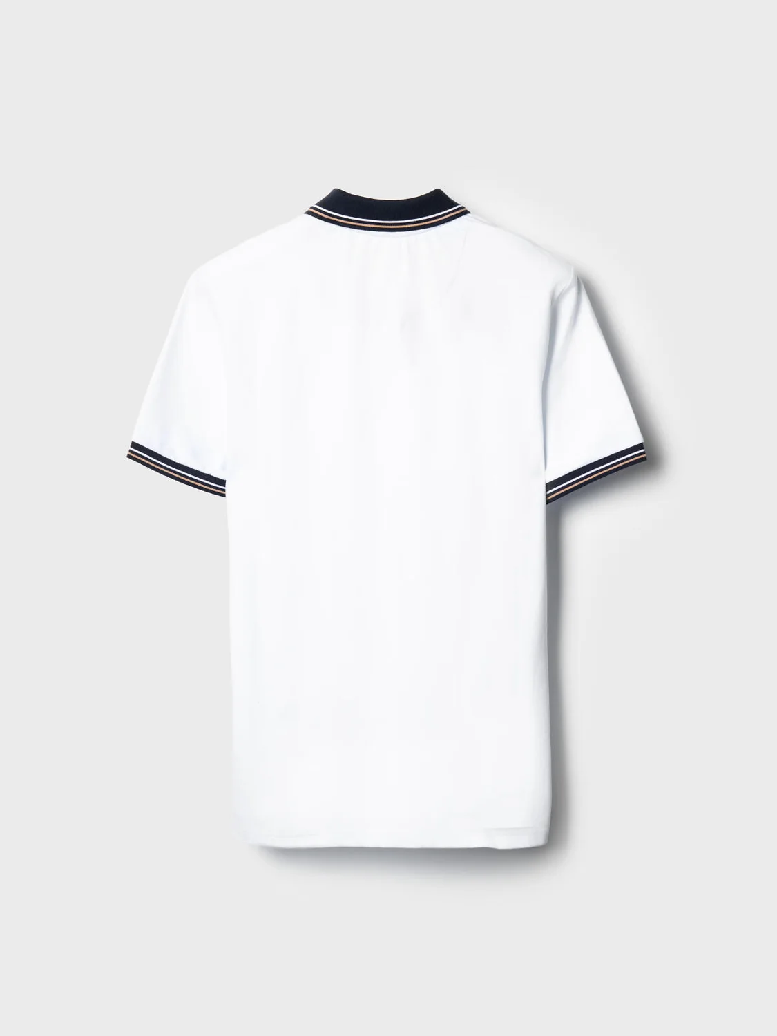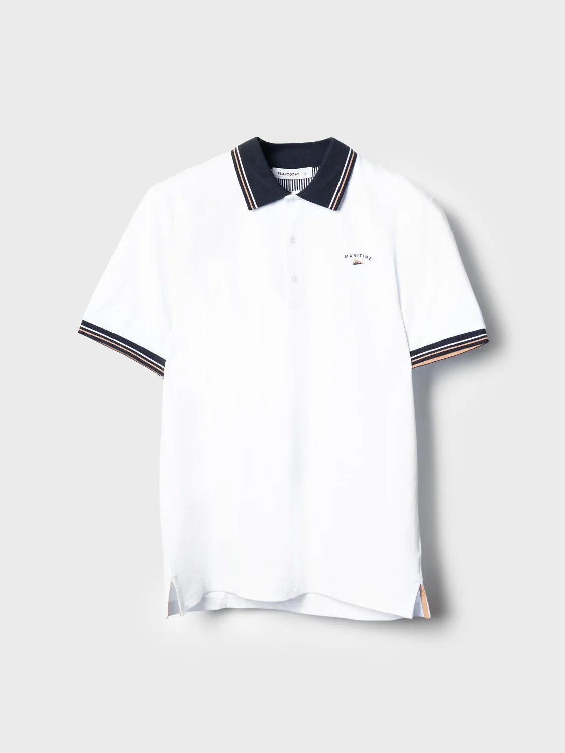 Мужская футболка-поло. Модель прямого кроя, средней длины с короткими рукавами. Выполнена из мягкого, хлопкового трикотажа пике. На груди расположен аккуратный принт. Застежка на три пуговицы. По бокам — небольшие разрезы с контрастной отделкой.