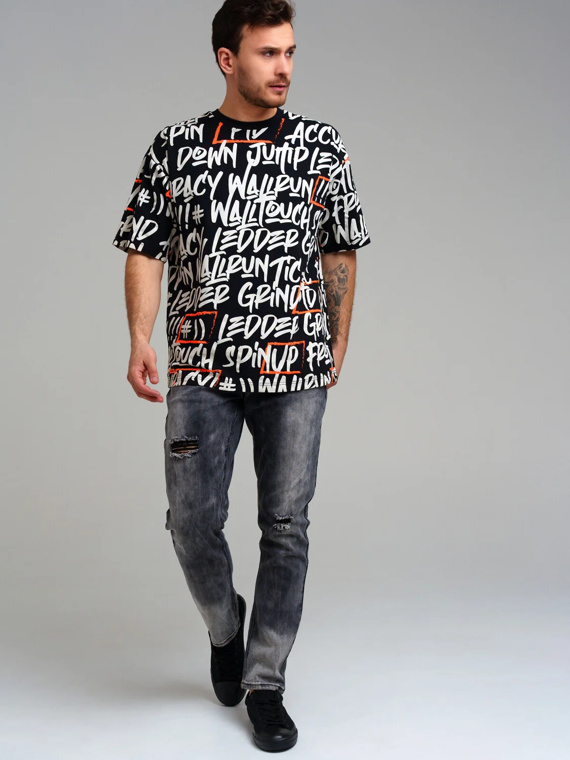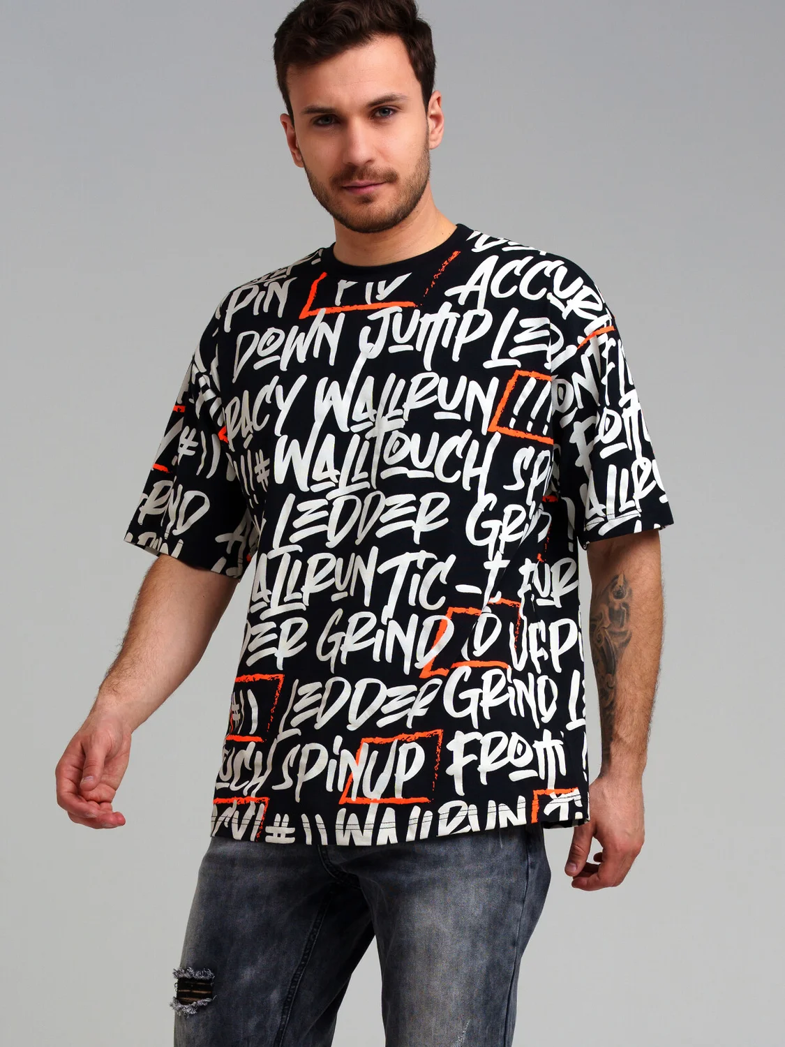 Футболка oversize из качественного и приятного на ощупь трикотажа джерси. Высокое содержание хлопка 95%. Благодаря наличию эластана в составе ткани изделие проще в уходе и держит форму.
